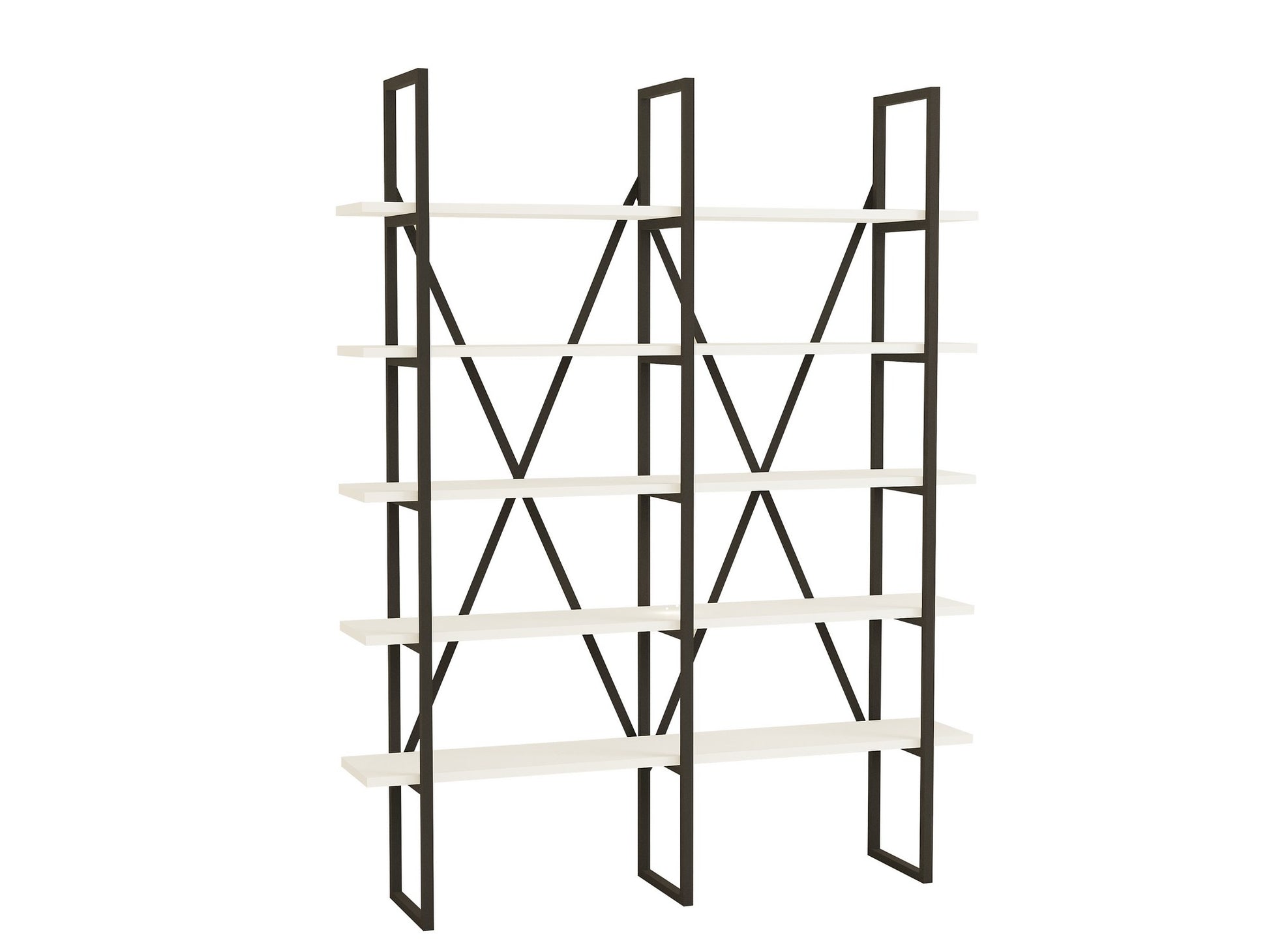 Estante de livros – 126 cm x 160 cm x 26 cm – Branco e Preto – Painel de partículas revestido a melamina e Metal