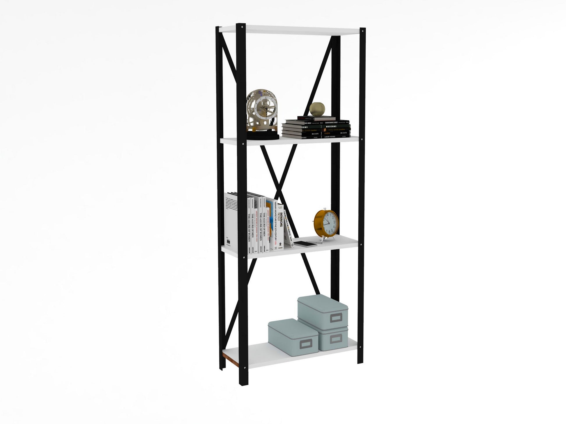 Estante de livros – 60 cm x 149.5 cm x 29 cm – Branco e Preto – Metal e Painéis de Partículas