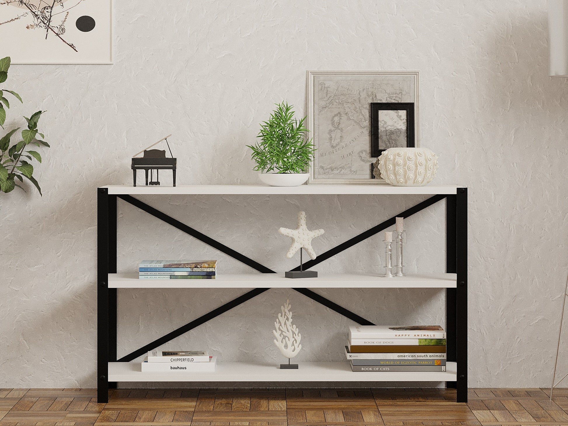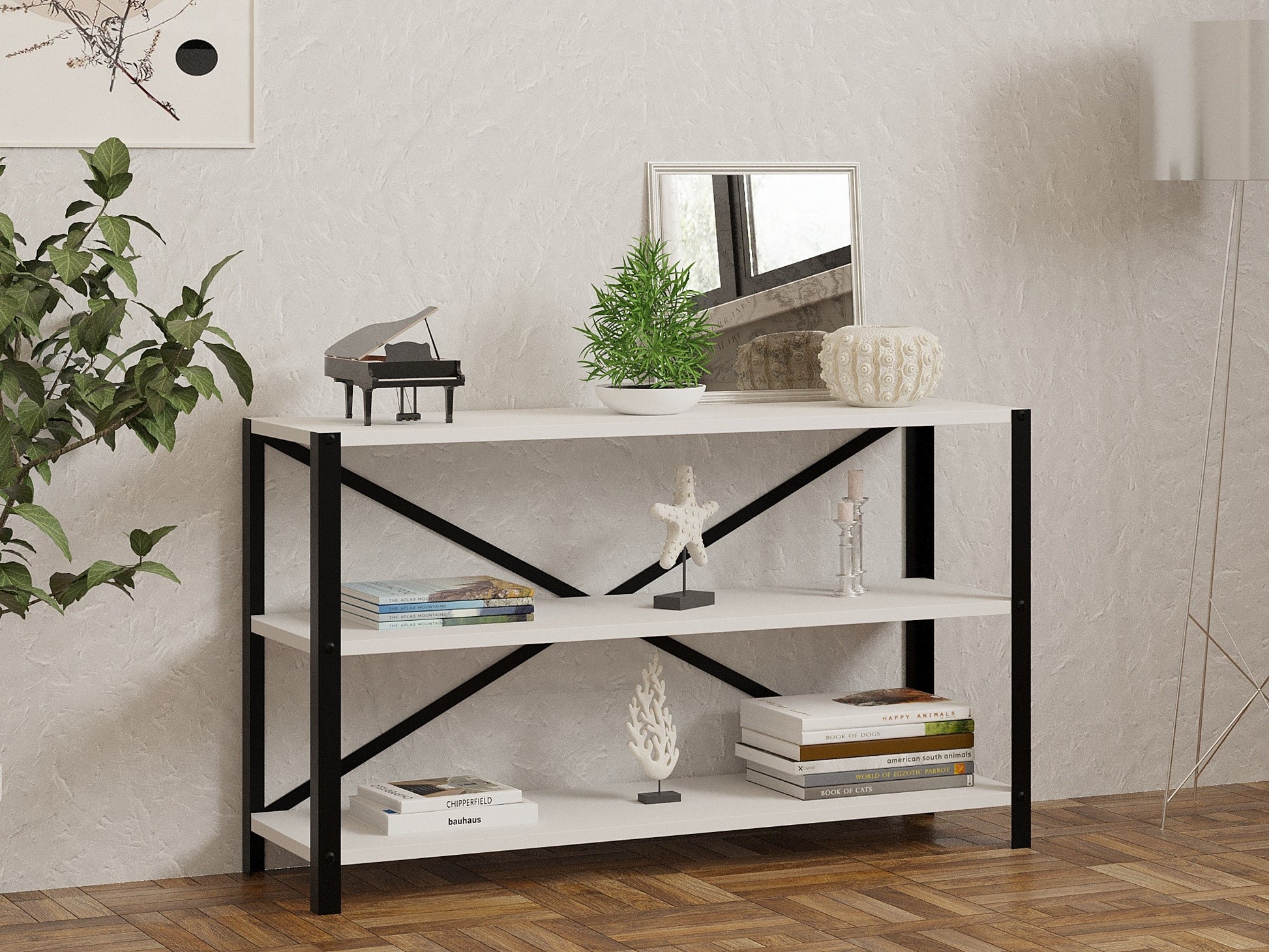 Com uma estrutura robusta feita de 100% metal, esta estante garante estabilidade e resistência. A espessura de 18 mm das prateleiras garante que estas suportam o peso dos seus livros sem ceder ou dobrar. Com uma largura de 103 cm, uma altura de 60 cm e uma profundidade de 29,5 cm, esta estante oferece um espaço amplo para organizar os seus livros, revistas e até mesmo exibir os seus objectos decorativos favoritos.