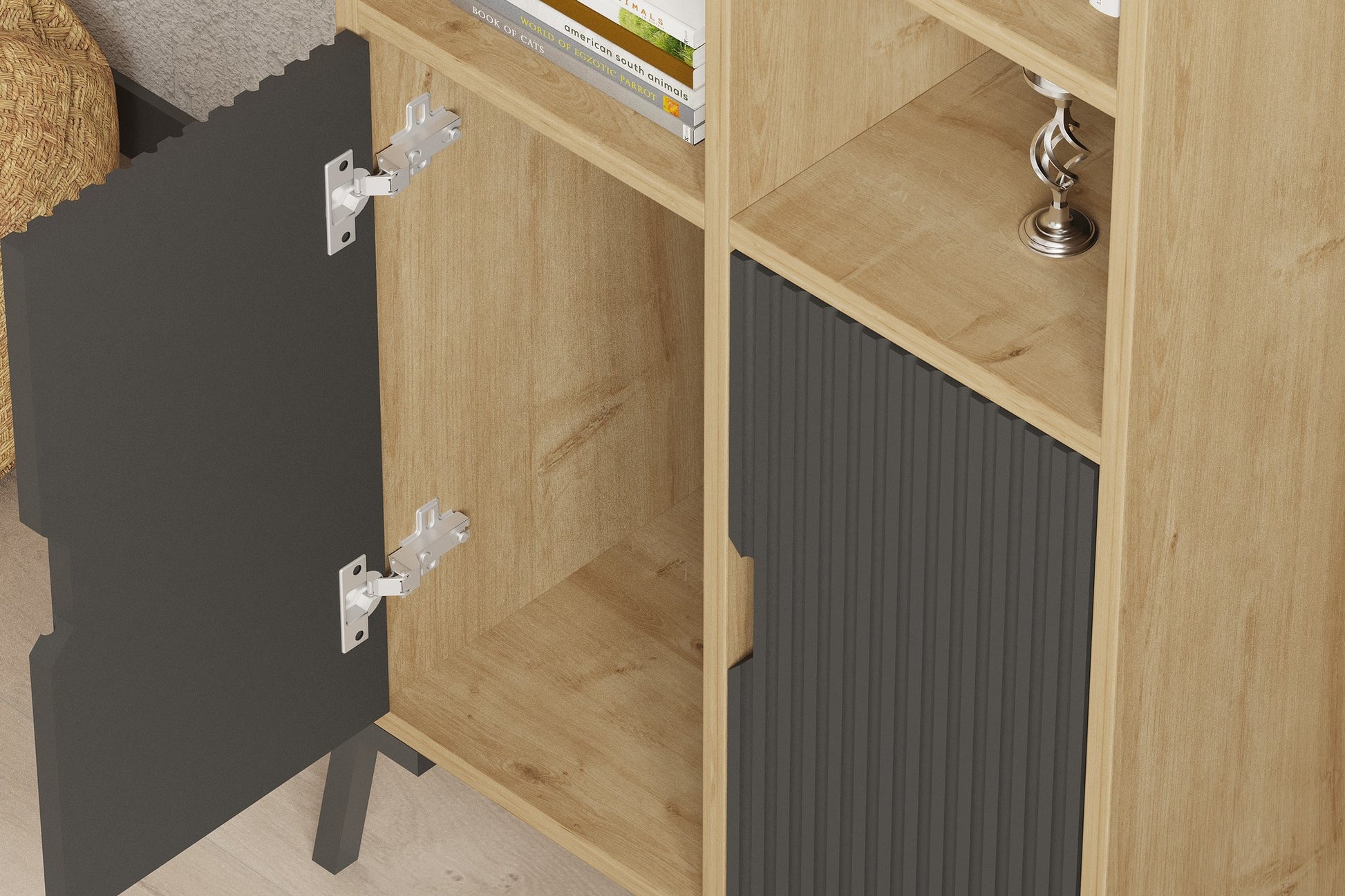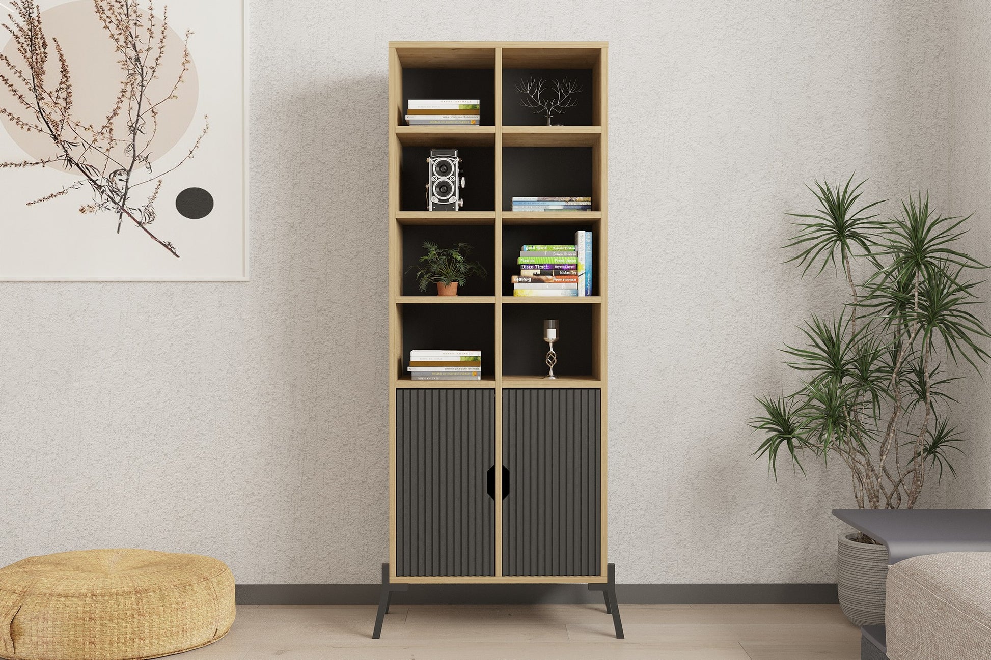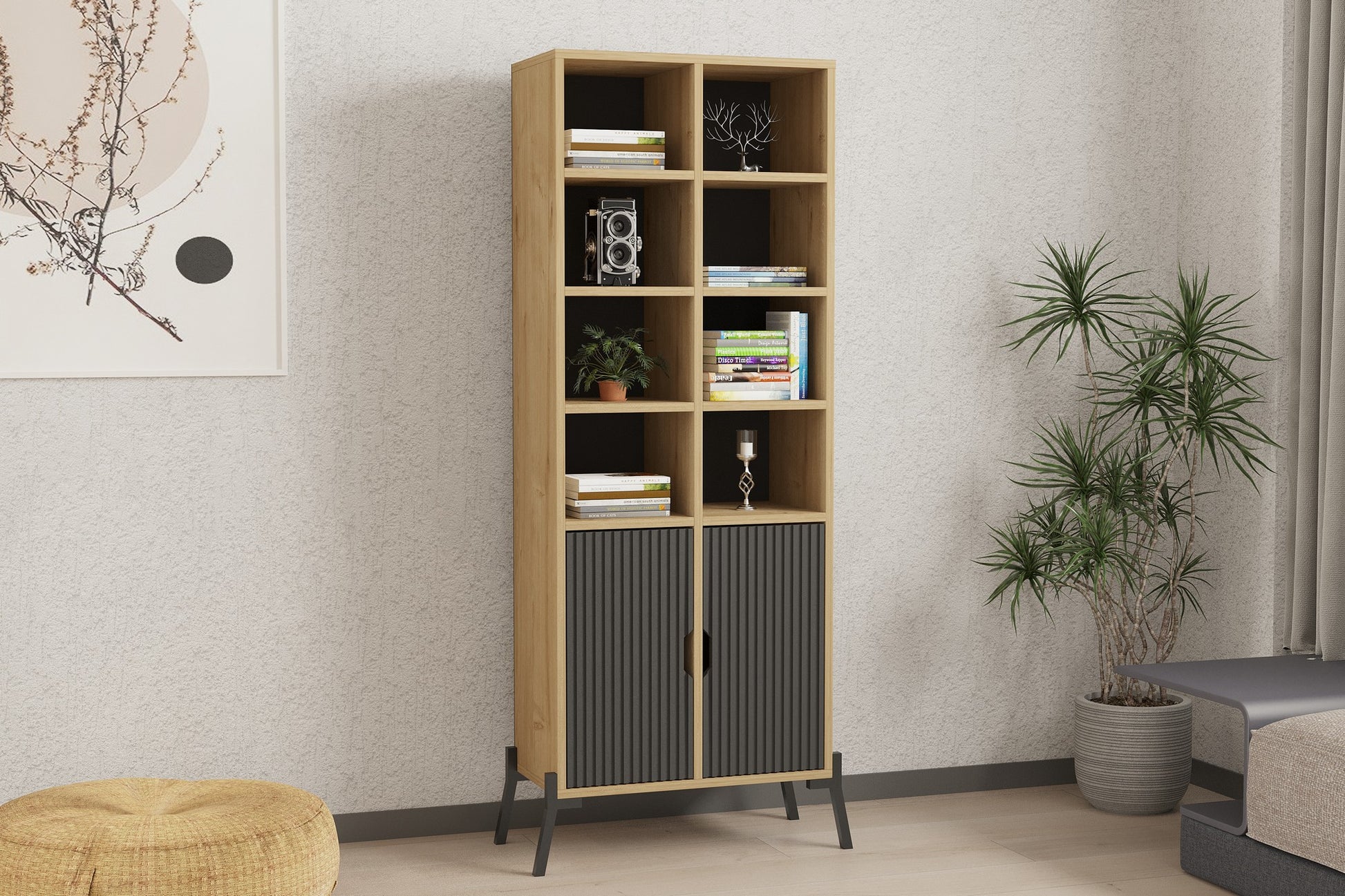 A estante está disponível numa combinação deslumbrante de cores de carvalho safira e antracite. O conceito de cor sólida acrescenta um toque de elegância e sofisticação a qualquer divisão, enquanto o design industrial complementa uma vasta gama de estilos de interiores. Quer tenha uma decoração moderna, minimalista ou eclética, esta estante irá integrar-se perfeitamente e melhorar o seu espaço.