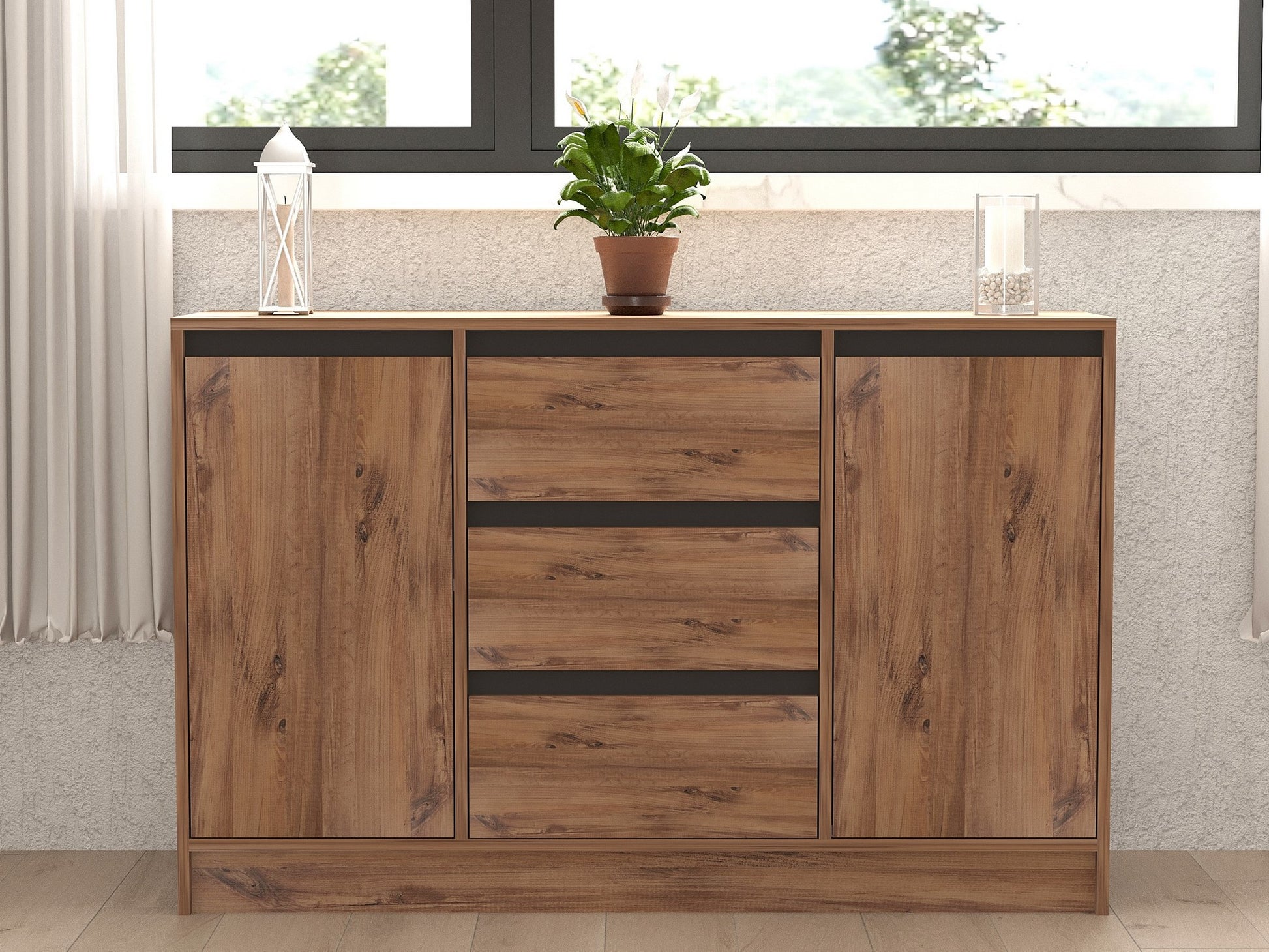 Aparador – 140 cm x 90 cm x 40 cm – Pinho Atlântico e Antracite – Painel de Partículas
