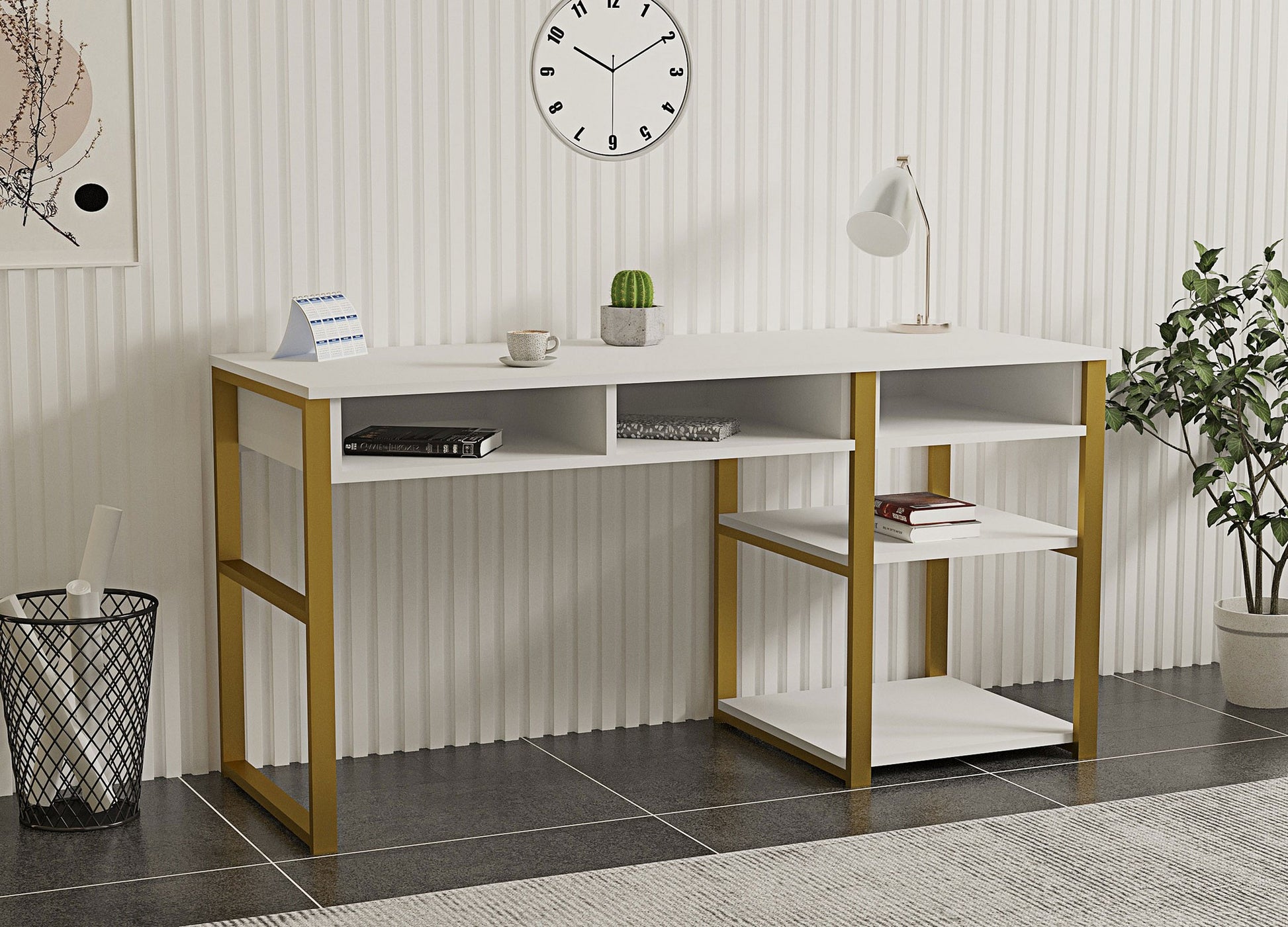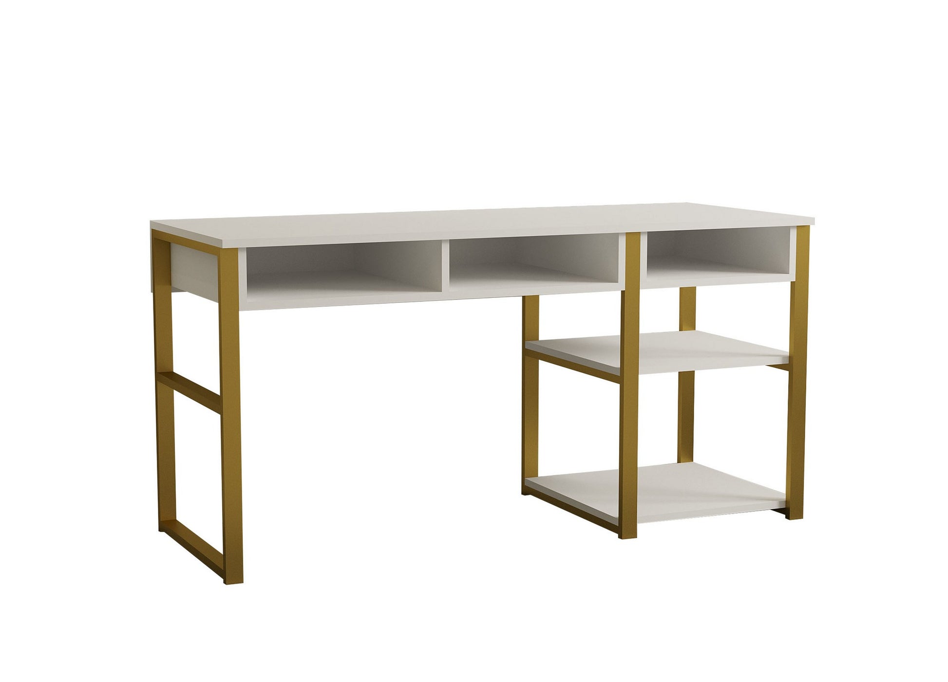 Secretária de Estudo – 150 cm x 75.8 cm x 58.4 cm – Branco e Dourado – Painel de Partículas