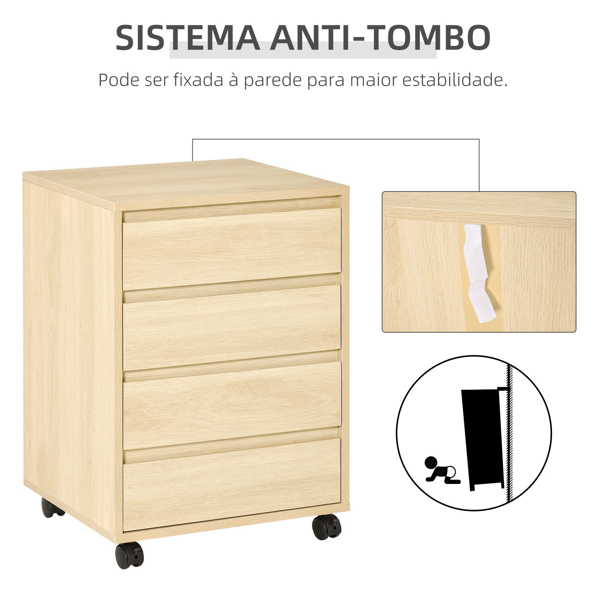 Bloco de Gavetas de Escritório 4 Gavetas Madeira 46x40x65 cm
