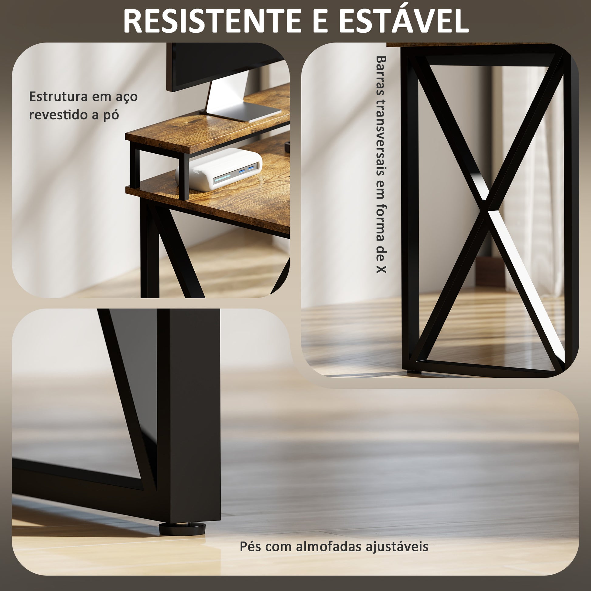 - Materiais: Melamina de madeira e aço