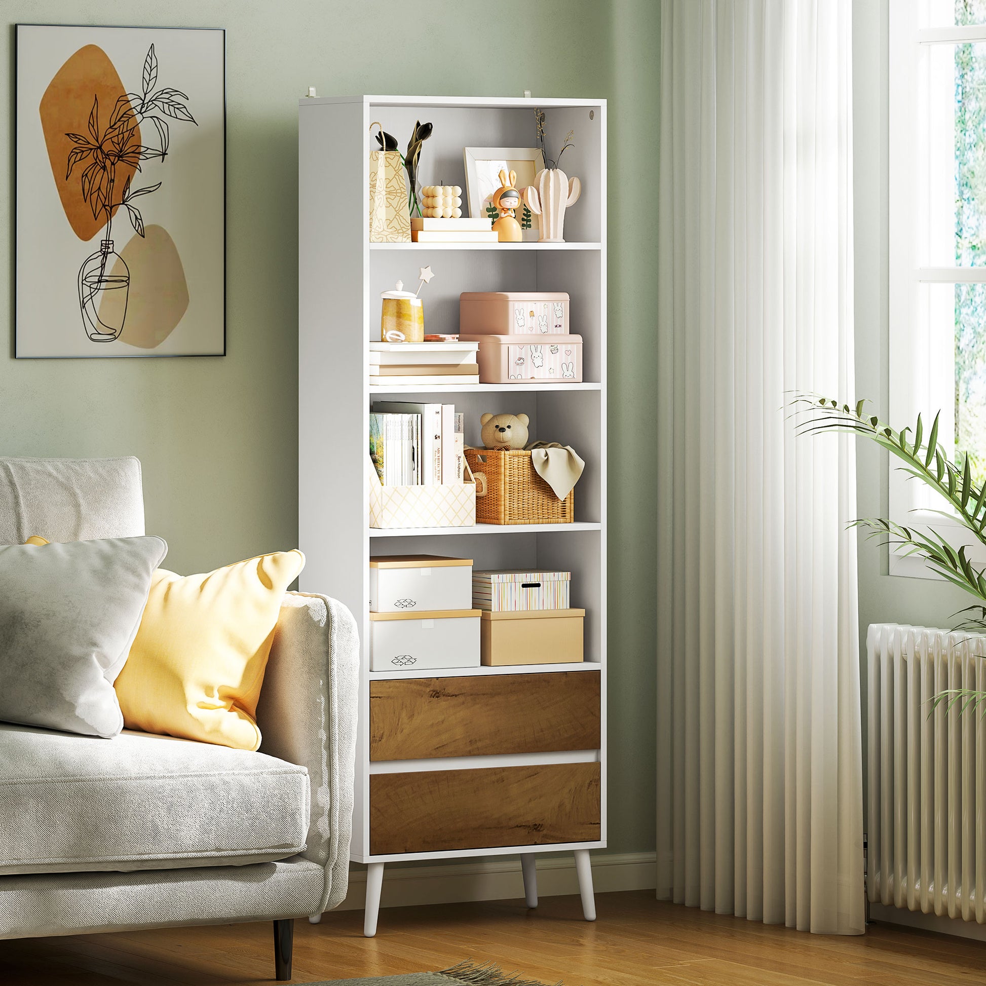 Organize os seus livros e objetos decorativos com esta elegante estante branca de 6 níveis, que inclui 2 gavetas e 4 prateleiras abertas. Com um design moderno e versátil, é ideal para qualquer sala de estar, escritório ou quarto.