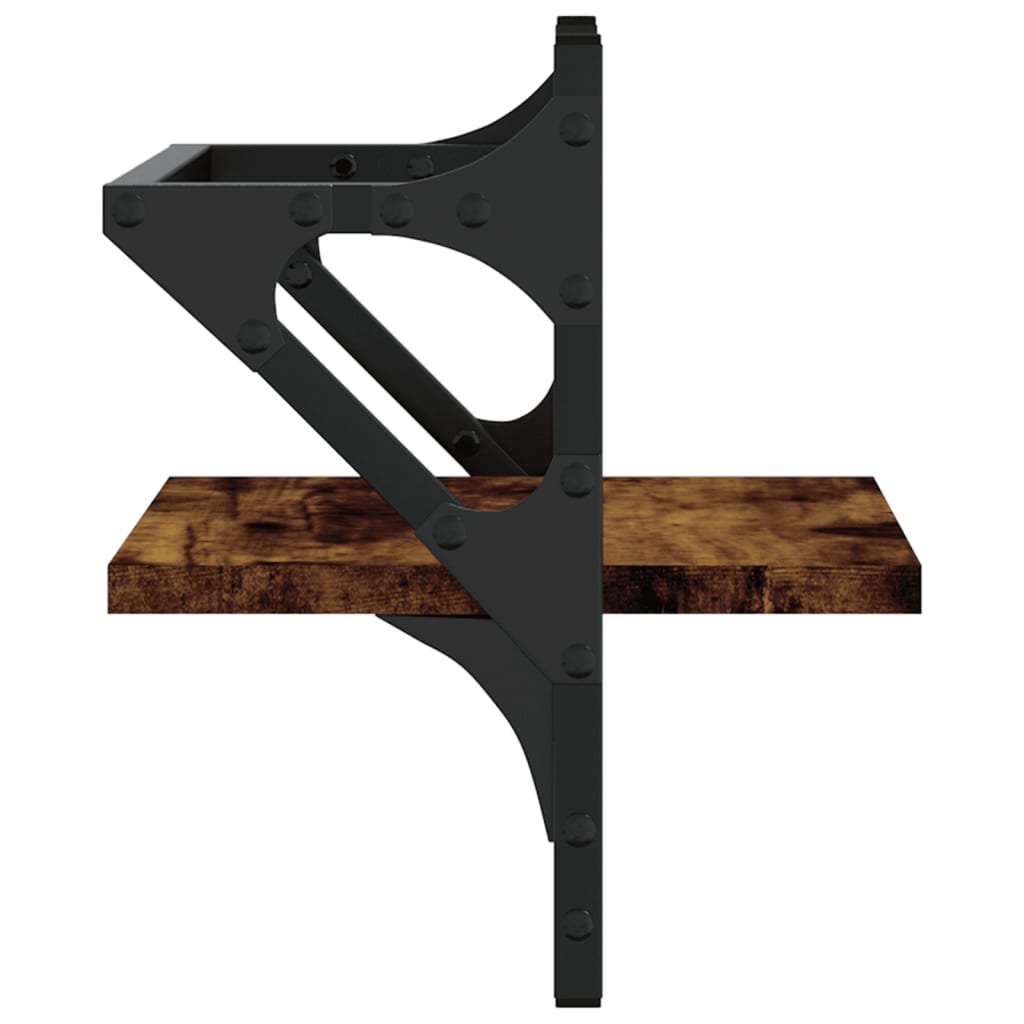 Prateleiras de parede c/ barras 2pcs 30x25x30cm carvalho fumado