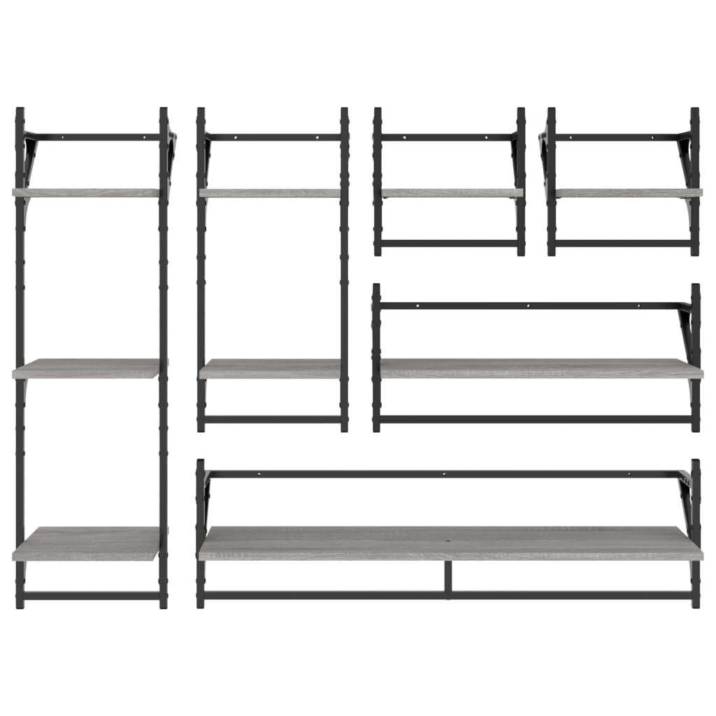 Conj. prateleiras c/ barras 6pcs derivados madeira cinza sonoma