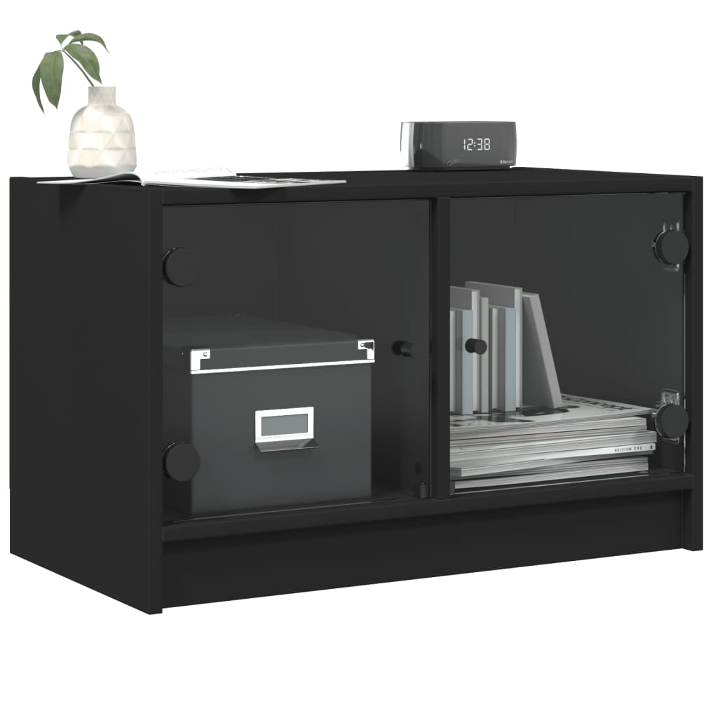 Móvel de TV c/ portas de vidro 68x37x42 cm preto