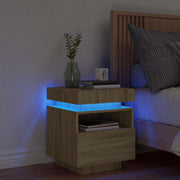 Mesa de cabeceira com luzes LED 40x39x48,5 cm carvalho sonoma