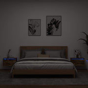 Mesas de cabeceira de parede com luzes LED 2pcs carvalho fumado