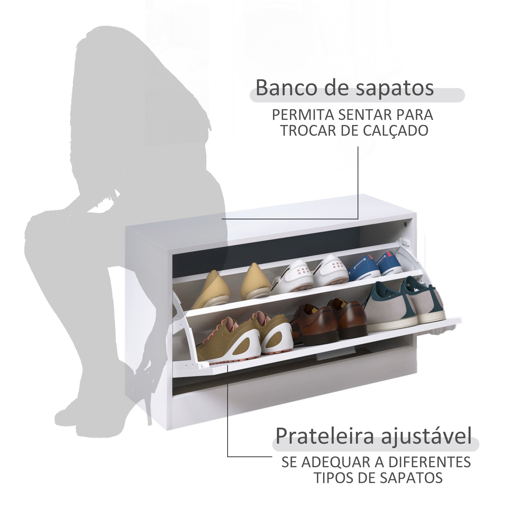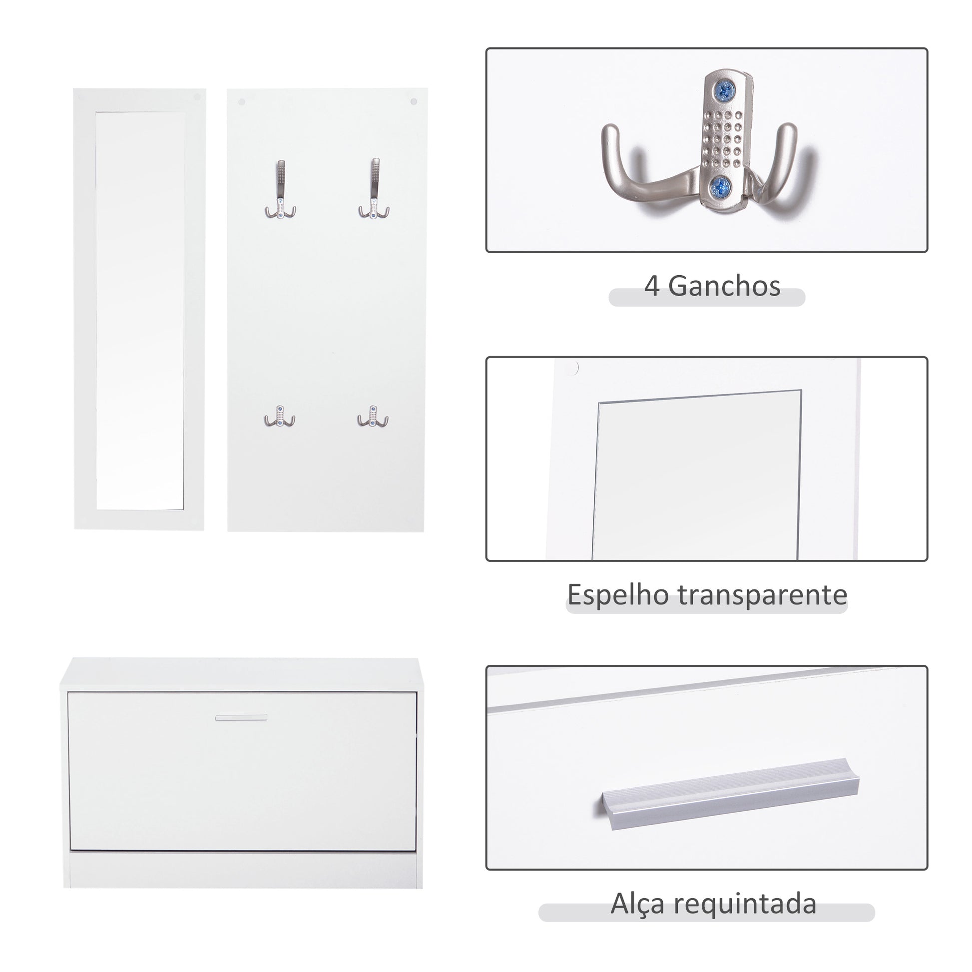 Móvel Cabide de Entrada 3 em 1 Branco 80x27x46,5cm