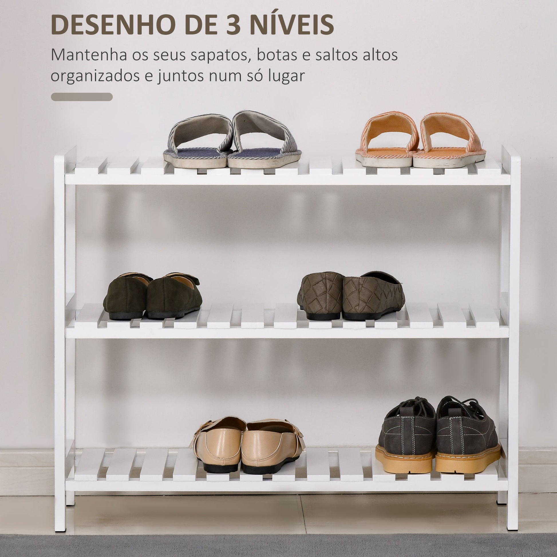 A sapateira de madeira branca é perfeita para organizar até 9 pares de sapatos de forma prática e funcional em qualquer espaço da sua casa.