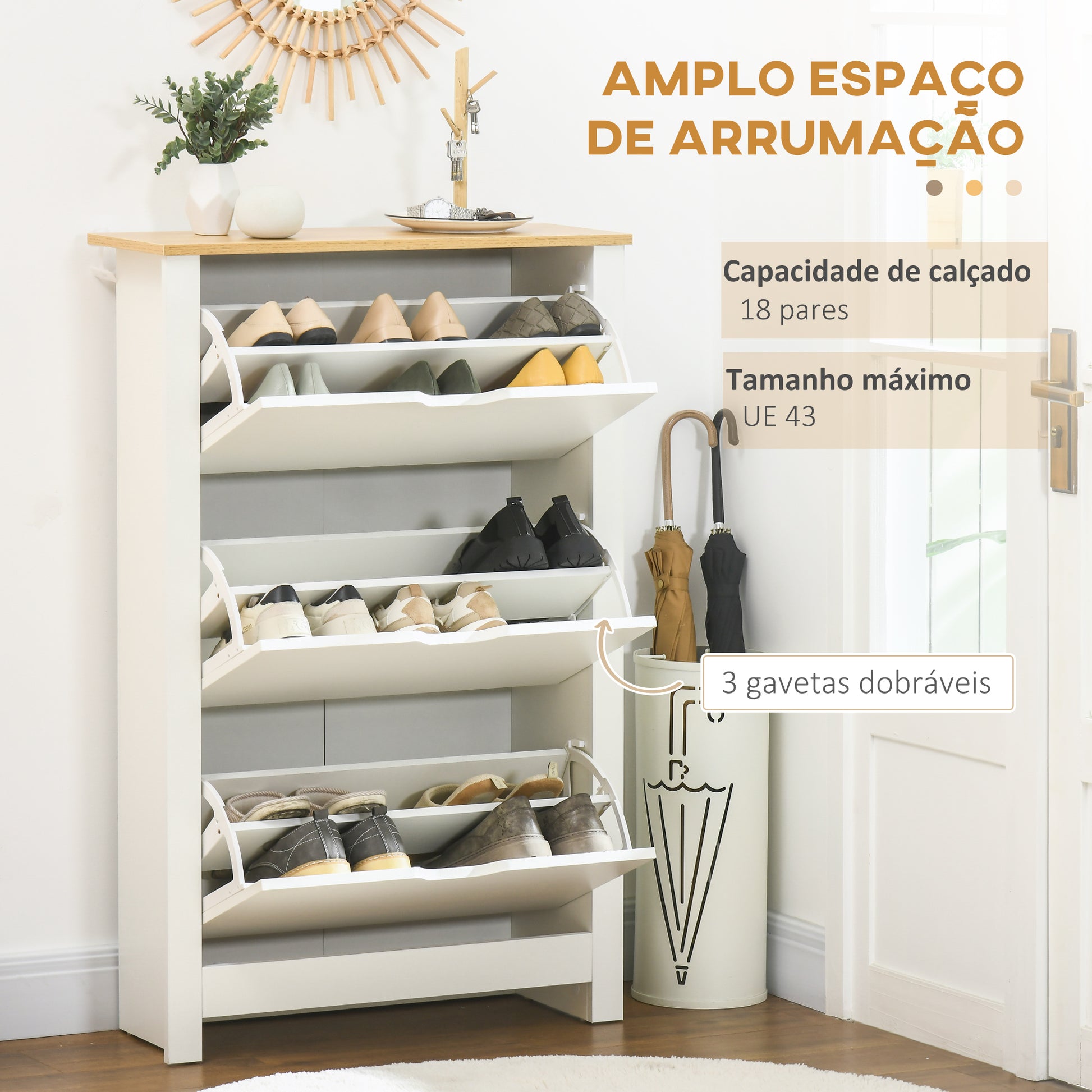 Sapateira Estreita Branca com 3 Gavetas Basculantes - 72x26x112 cm
