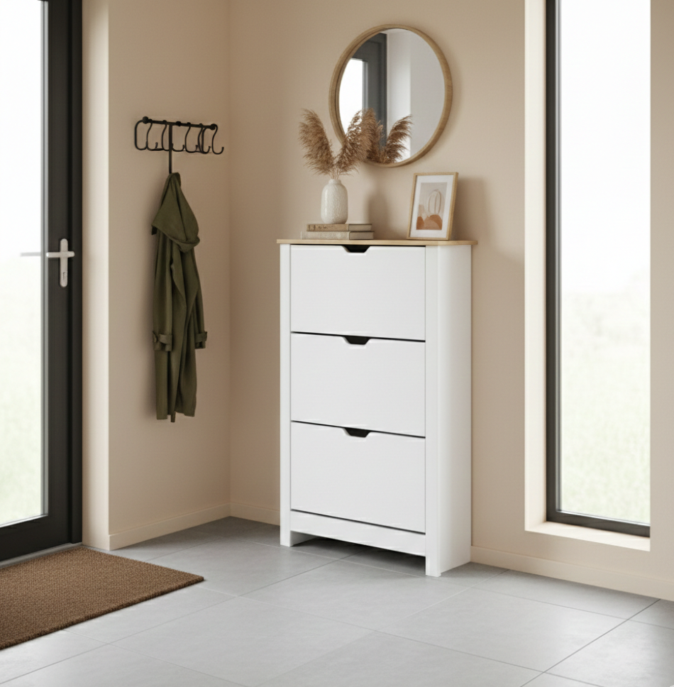 Esta sapateira espaçosa e prática é a solução ideal para manter a sua casa organizada e elegante. Com um design compacto e elegante, este móvel é perfeito para corredores estreitos ou espaços limitados.