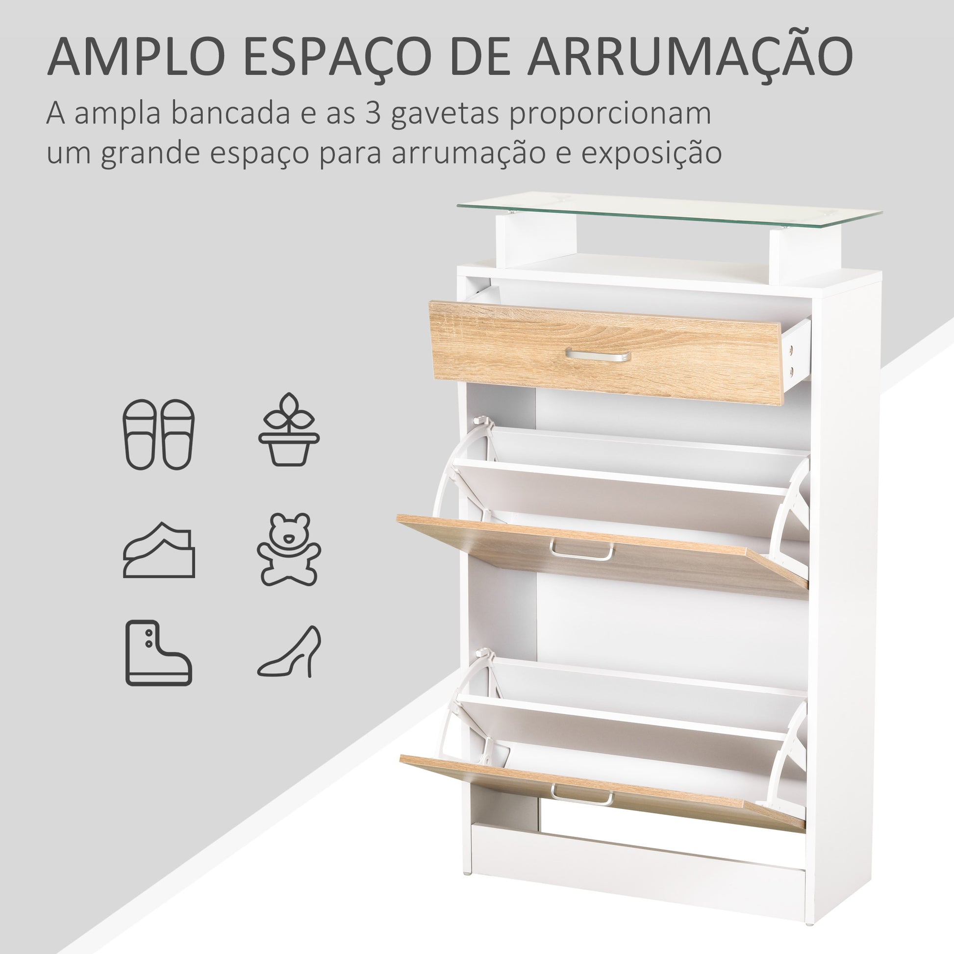 Sapateira Estreita para 12 Pares de Sapatos – 60x24x105,5cm – Branco – Melamina de madeira