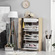 Sapateira de 3 Portas para 18-27 Pares de Sapatos 84x30x132 cm Madeira Natural e Branco