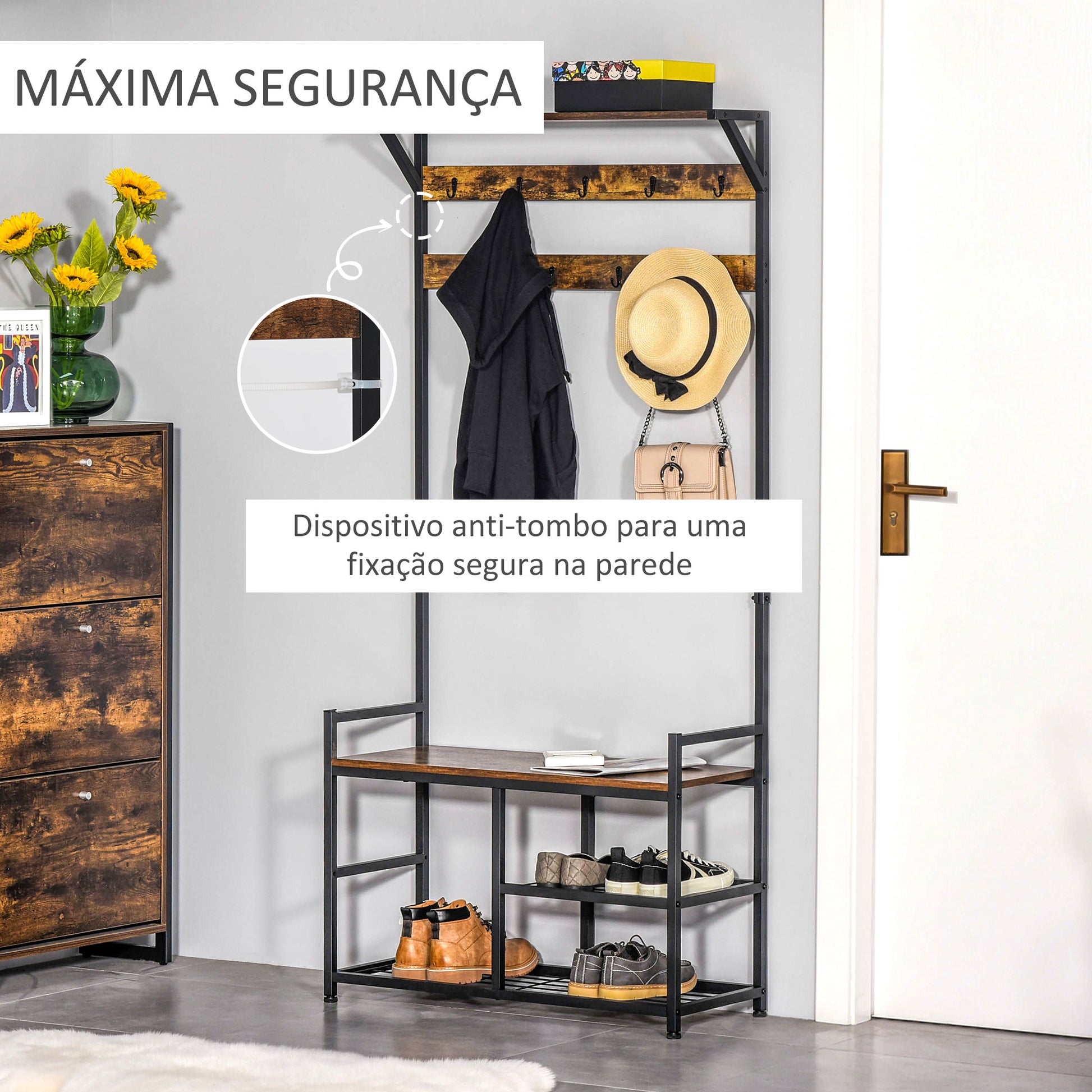 Móvel Cabide de Entrada 3 em 1 84x34,5x180cm Marrom e Preto