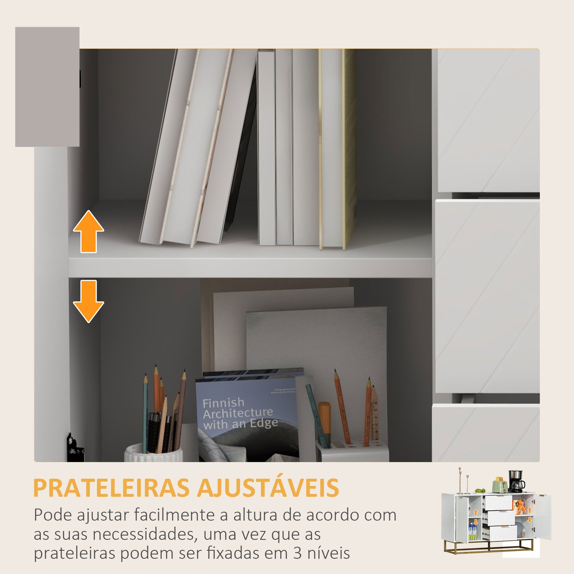 Aparador Auxiliar com 3 Gavetas e 2 Armários 120x40x76 cm - Branco