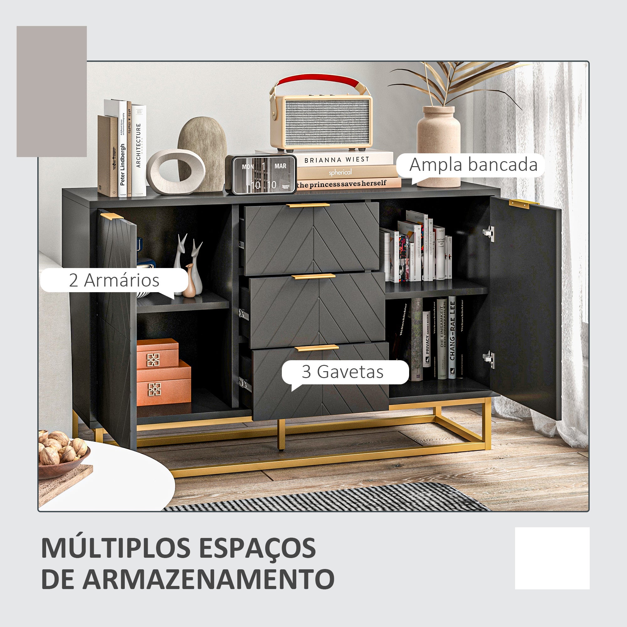 Aparador Auxiliar de Armazenamento – 120x40x76 cm – Preto – MDF e metal