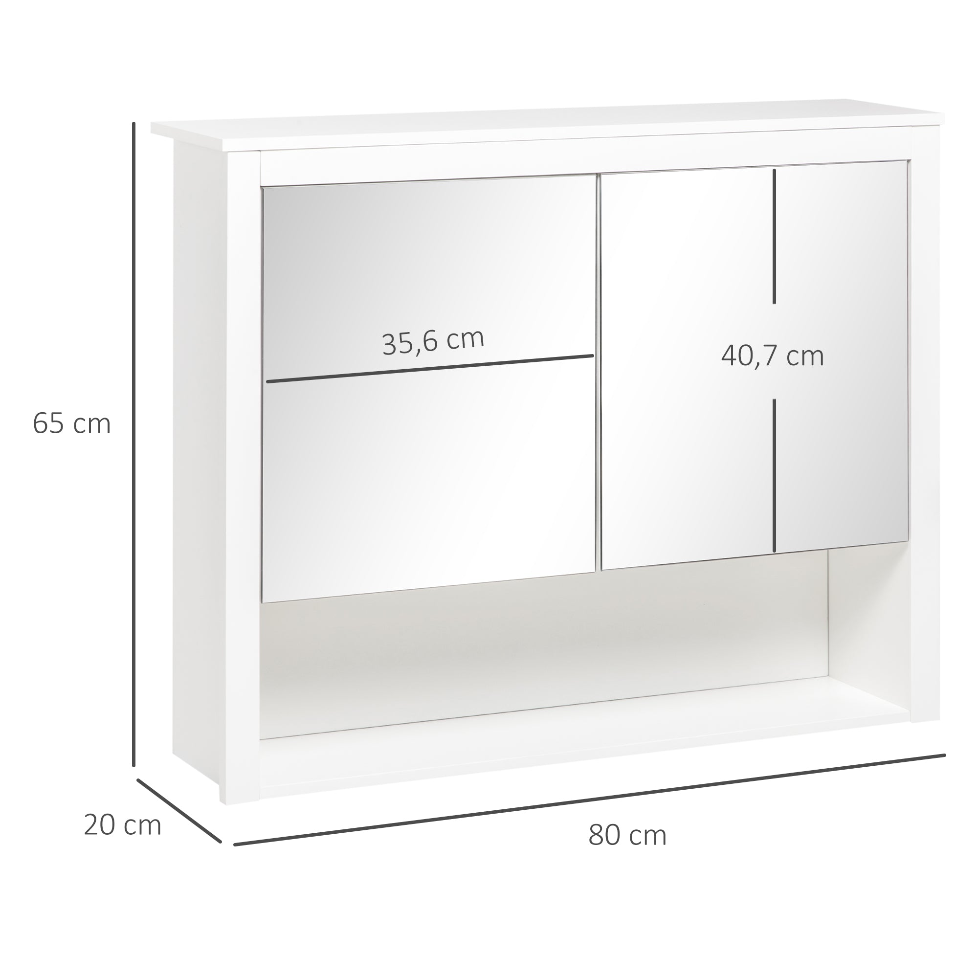 Armário de Parede para Casa de Banho – 80x20x65cm – Branco – MDF, vidro