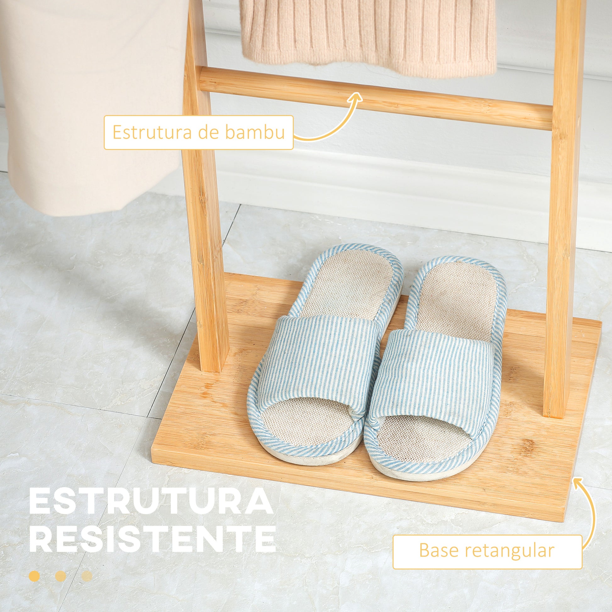 Cabide de Pé de Bambu com 2 Ganchos e 3 Barras Suspensas - Cor de Madeira Natural - 36x24x168cm