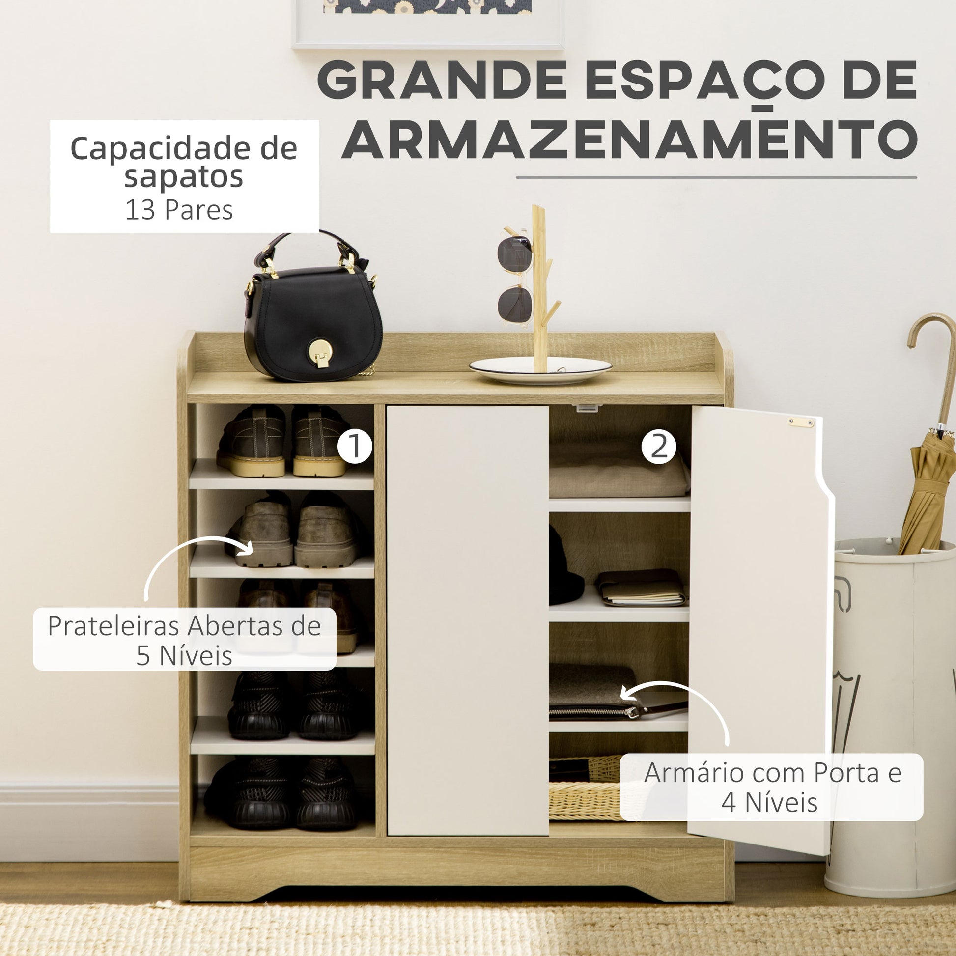 Adicione um toque de elegância à sua casa com esta sapateira moderna em madeira e branco, ideal para armazenar até 13 pares de sapatos.