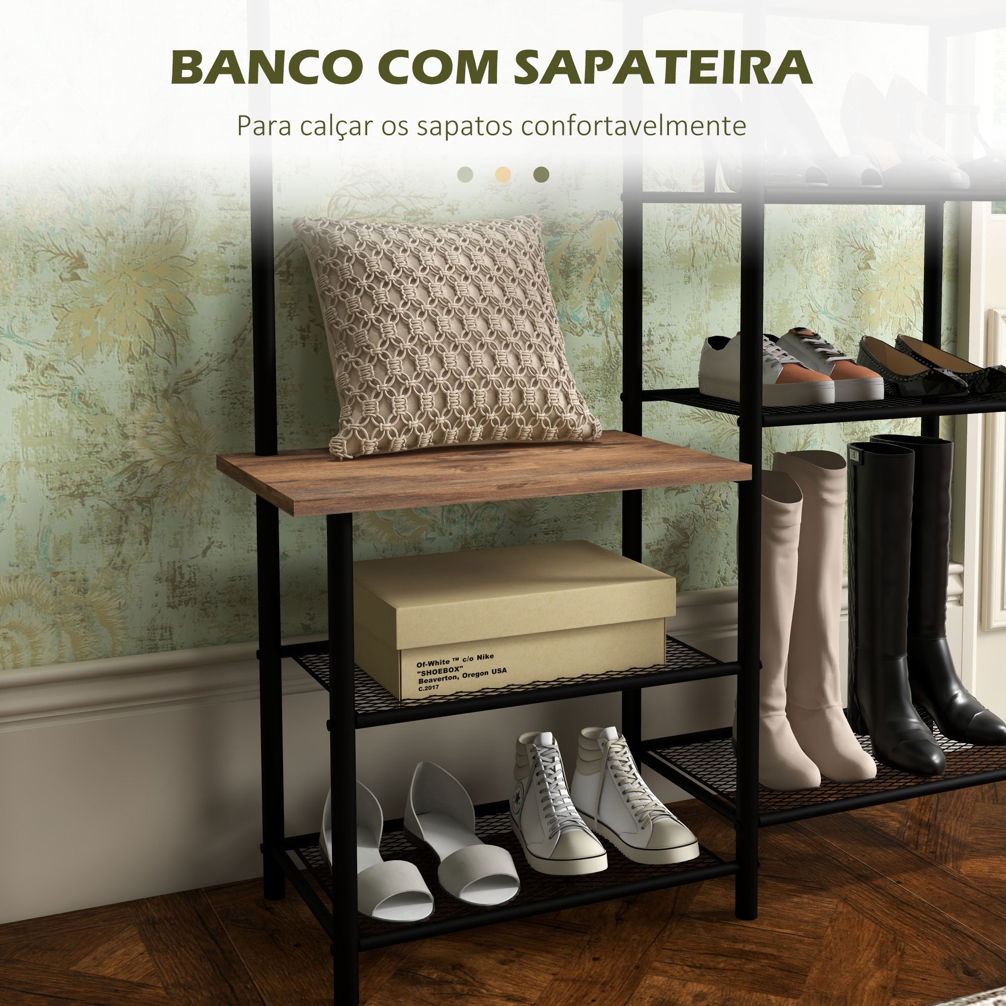 Adicione um toque de elegância e funcionalidade ao seu corredor com este Móvel Cabide de Entrada com Sapateira. Com medidas de 92,5x28x182 cm, este móvel em estilo rústico combina perfeitamente preto e marrom em sua estrutura.
