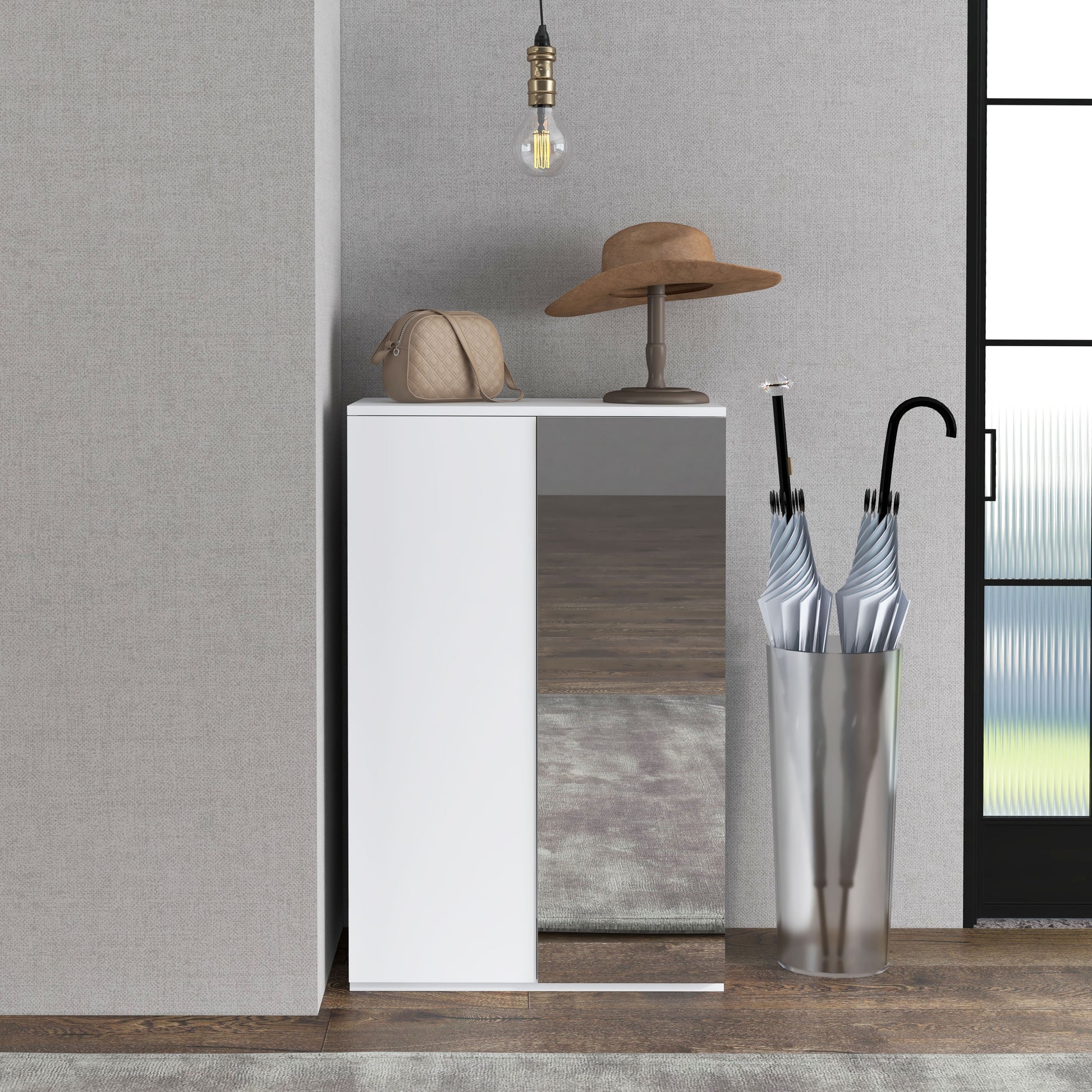 Sapateira com Espelho Móvel – 60x32x95 cm – Branco – Melamina de madeira e acrílico