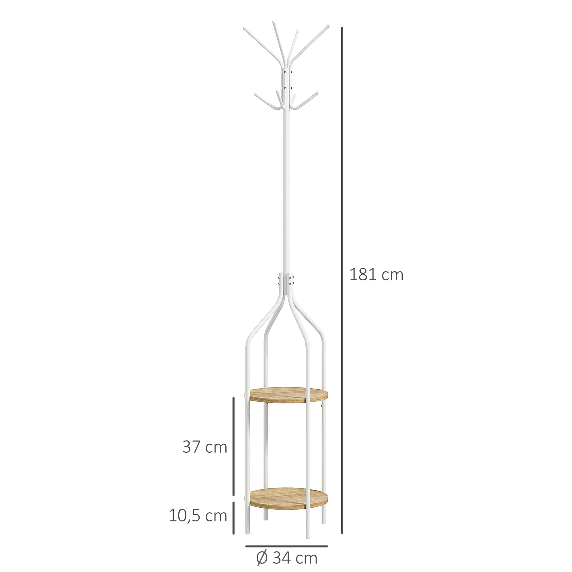 Cabide de Pé com 2 Prateleiras Ø34x181 cm - Branco
