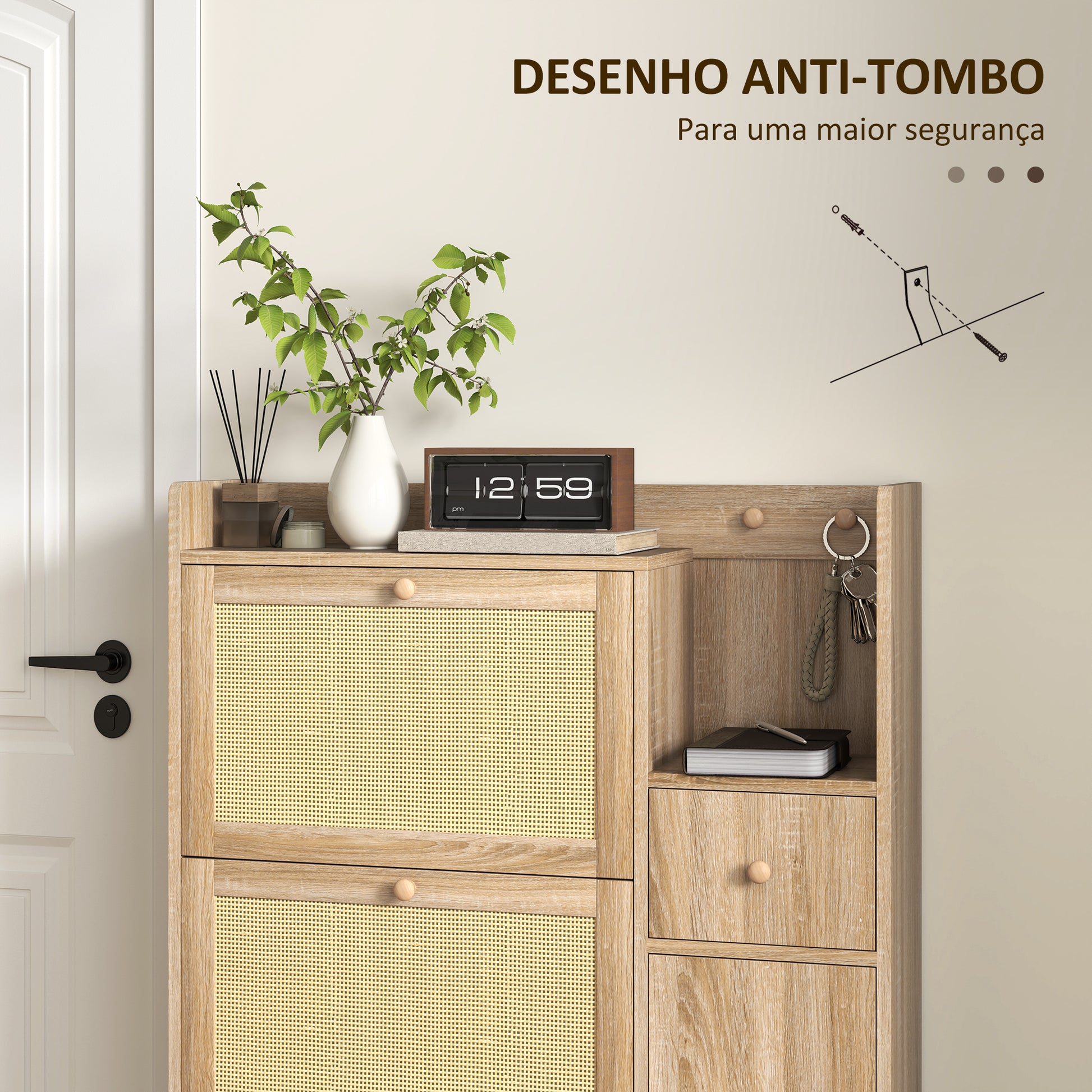 Sapateira Estreita com 3 Gavetas - 80x23x120 cm - Cor de Madeira Natural - Vime