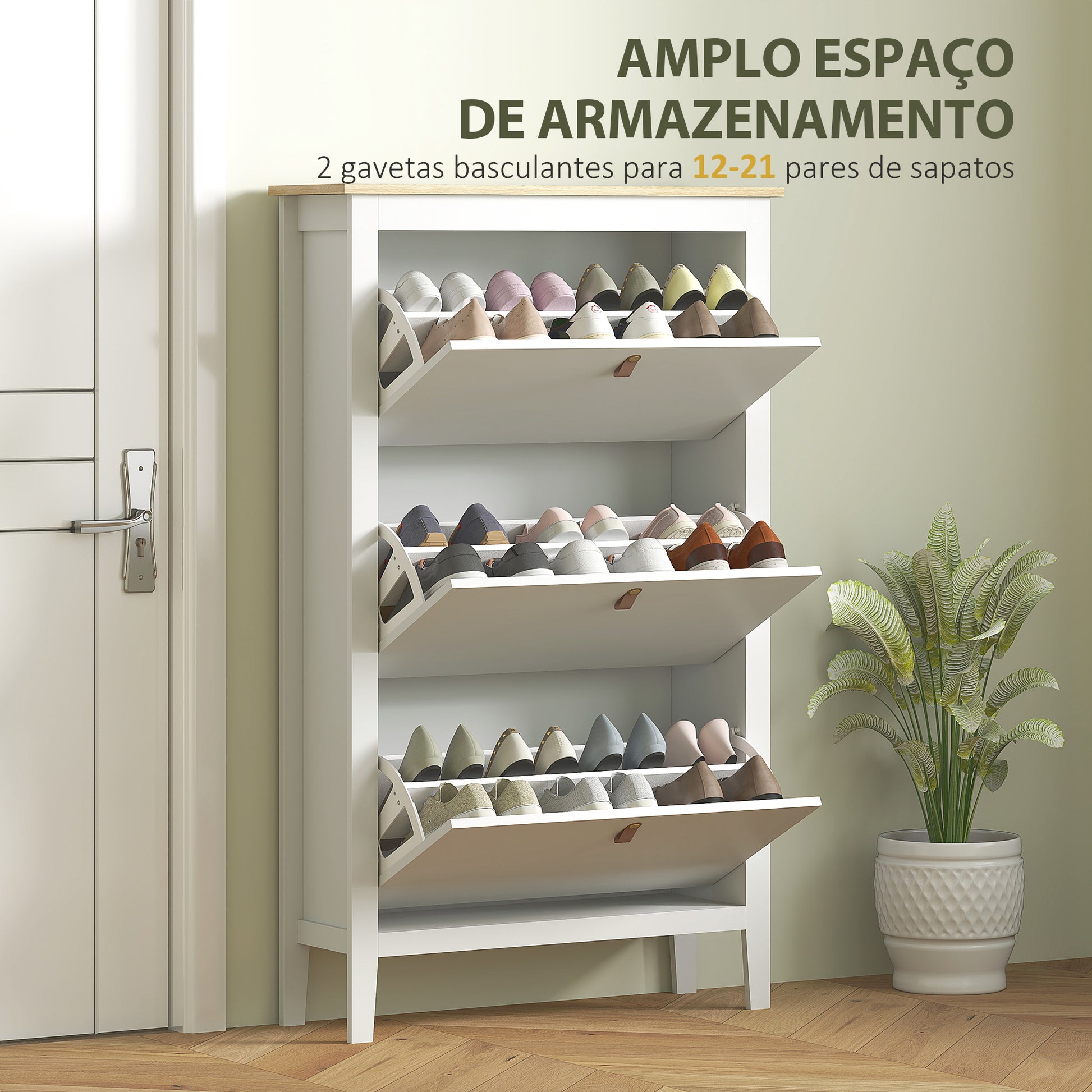 Sapateira Estreita com 3 Gavetas Abatíveis 80x24x131 cm - Branco