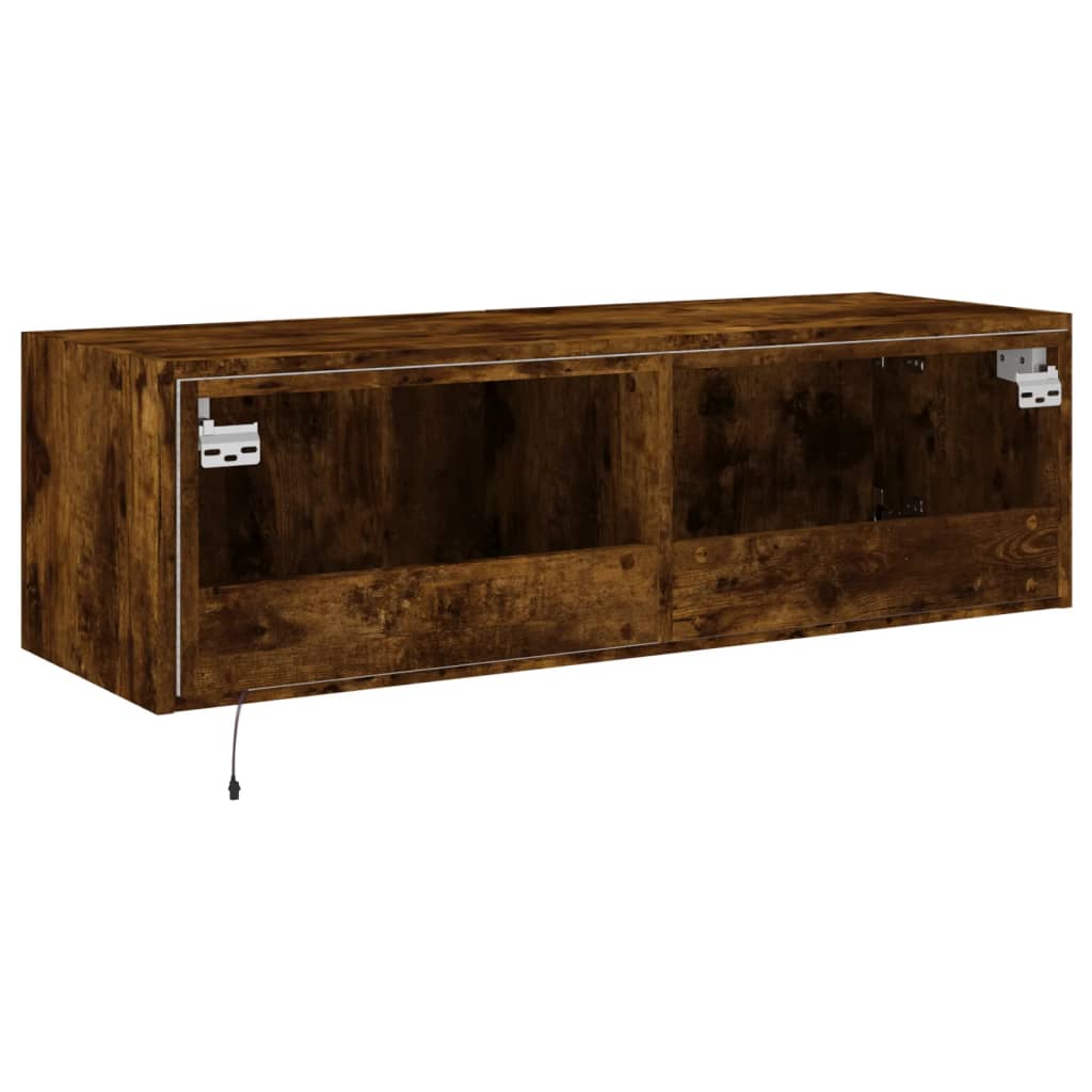 Móvel de parede p/ TV c/ luzes LED 100x35x31 cm carvalho fumado