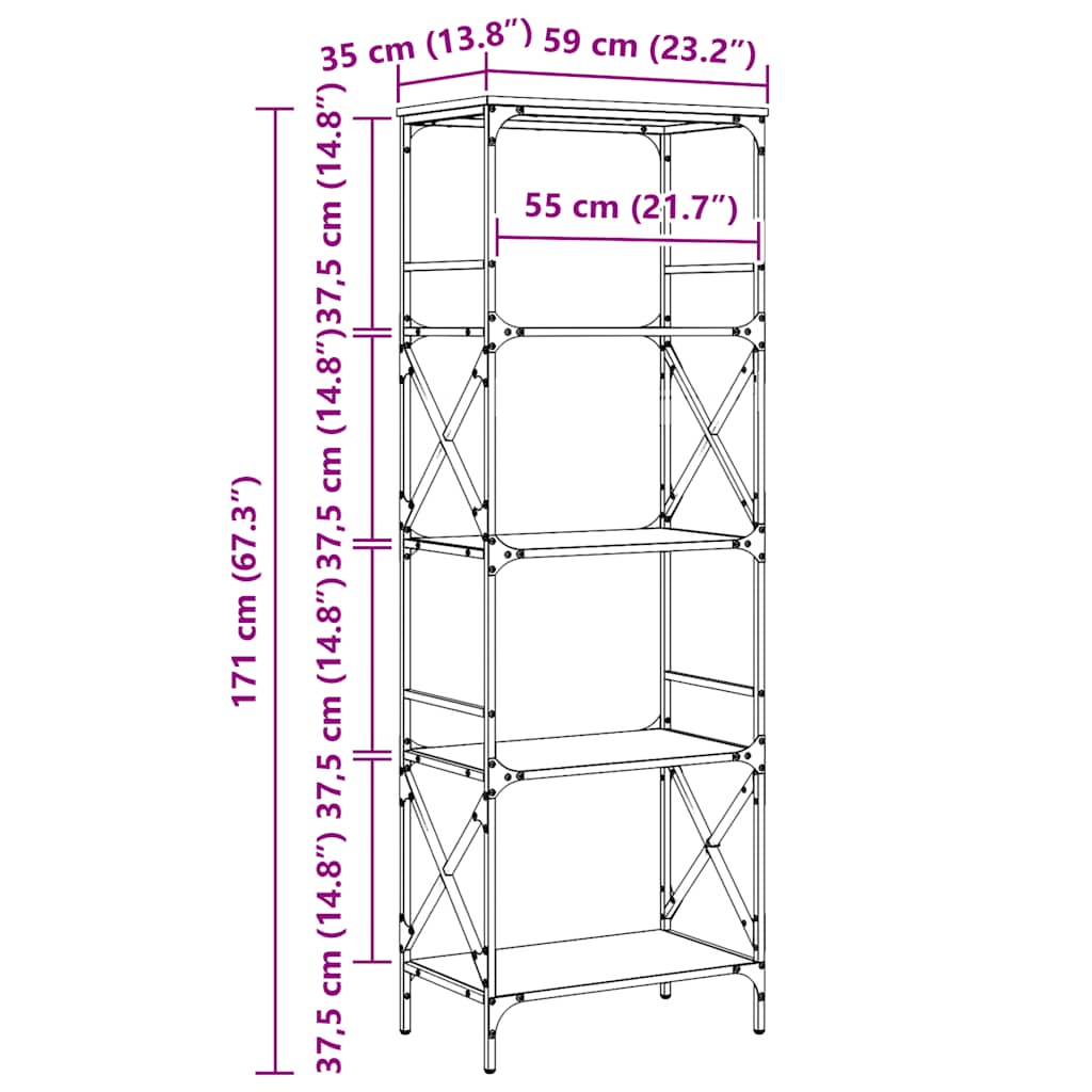 Estante c/ 5 prateleiras derivados de madeira carvalho fumado