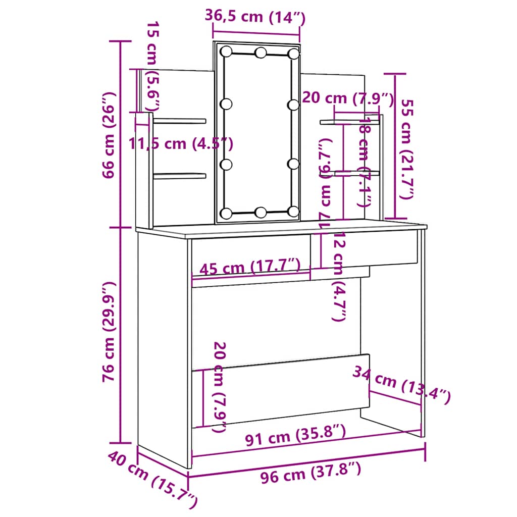 Com uma aparência intemporal e refinada, o toucador com um espelho e luzes LED é um ótimo complemento para a decoração do seu quarto, ao mesmo tempo que mantém os seus produtos de cosmética ao alcance.