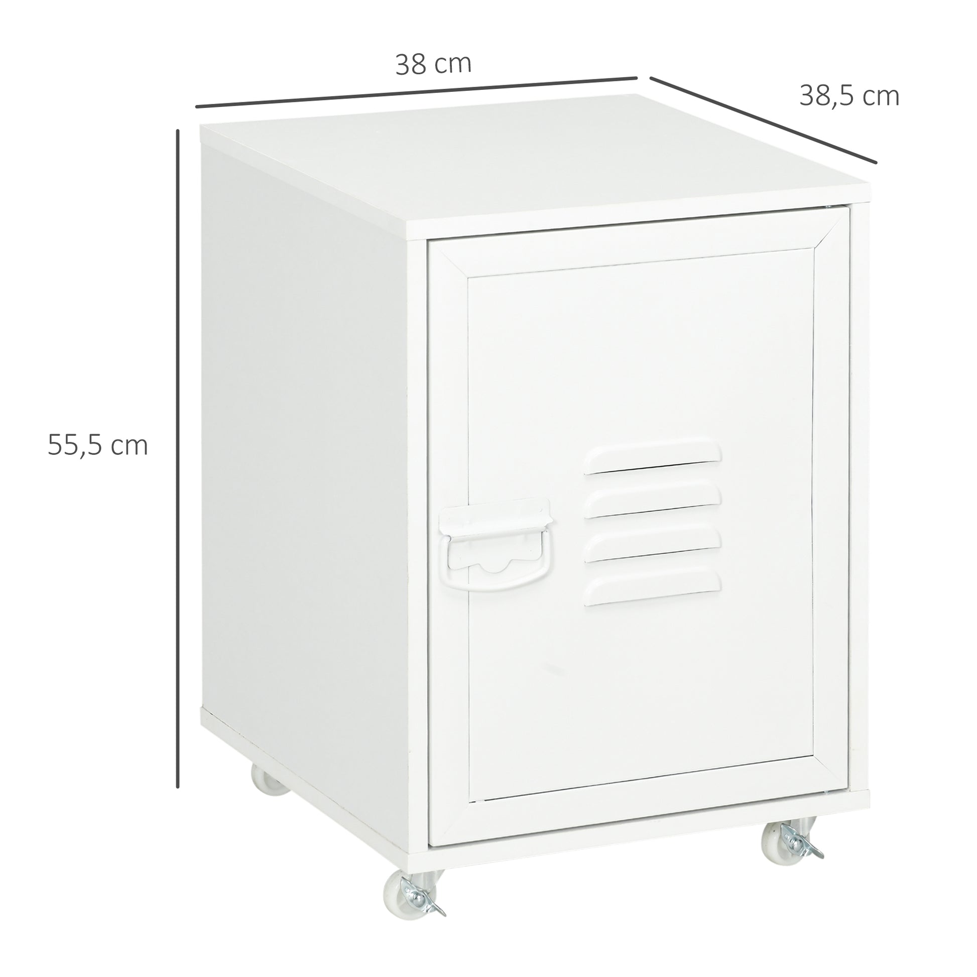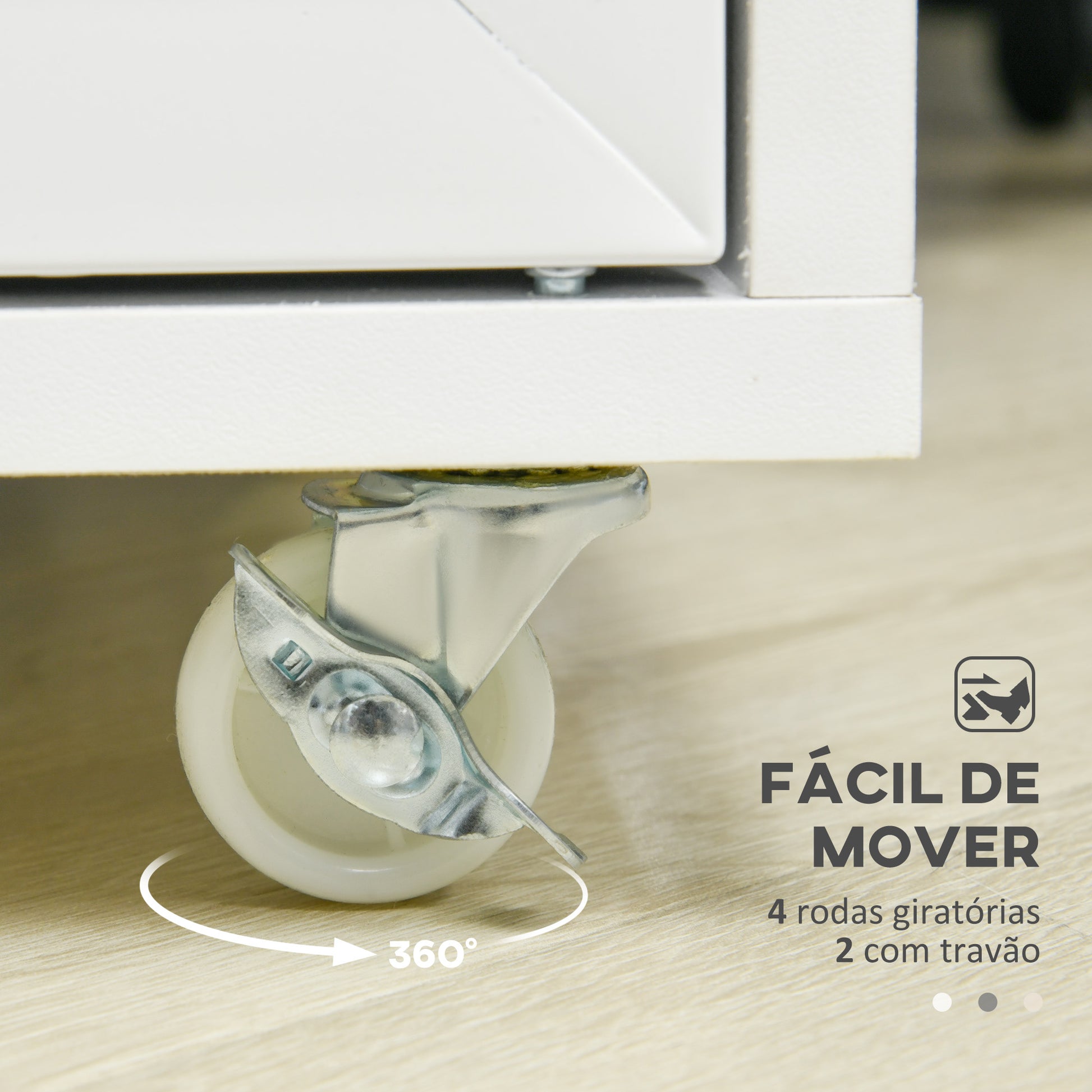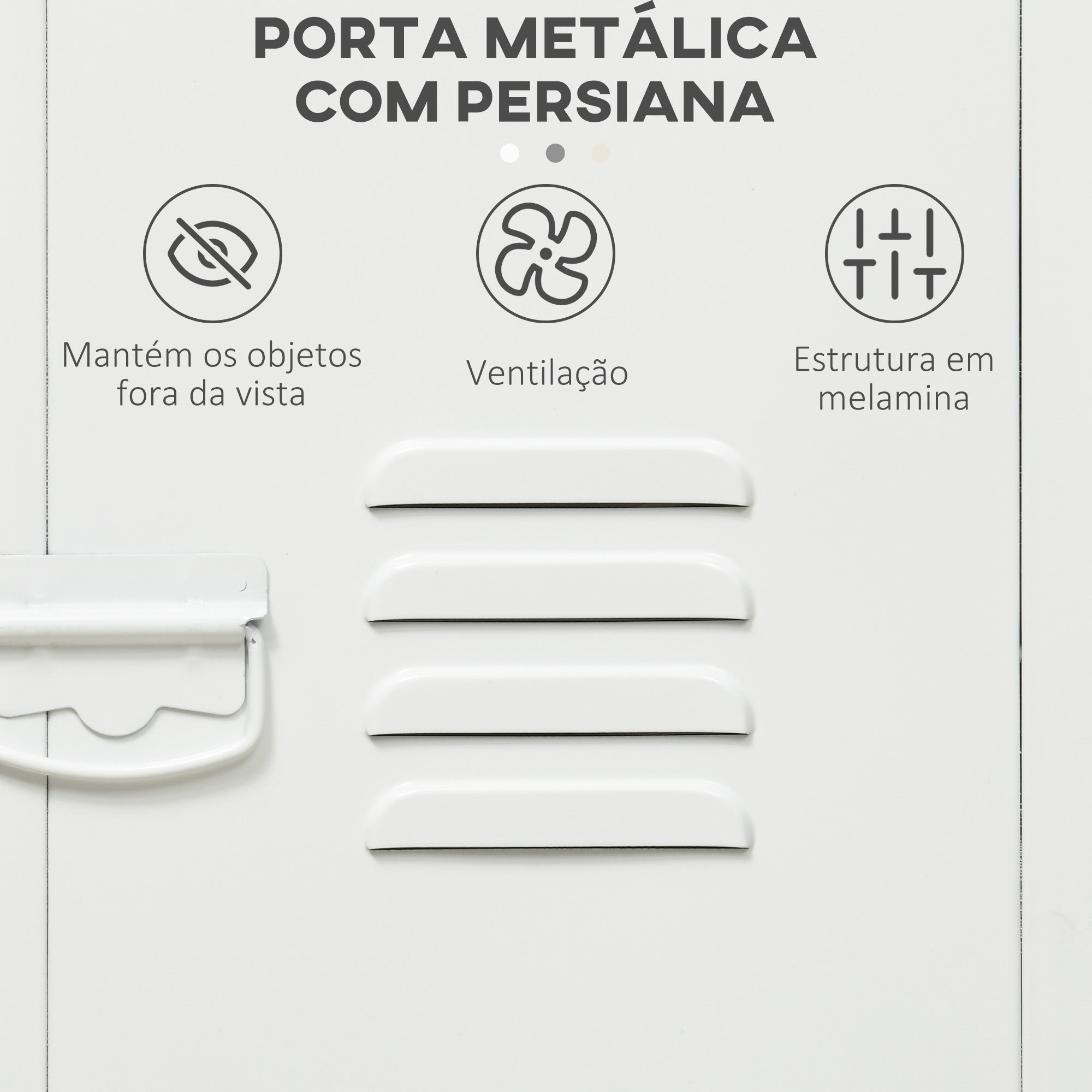 - Benefícios: Prateleira interior ajustável, porta de metal resistente, rodas para fácil deslocação, design compacto e funcional.