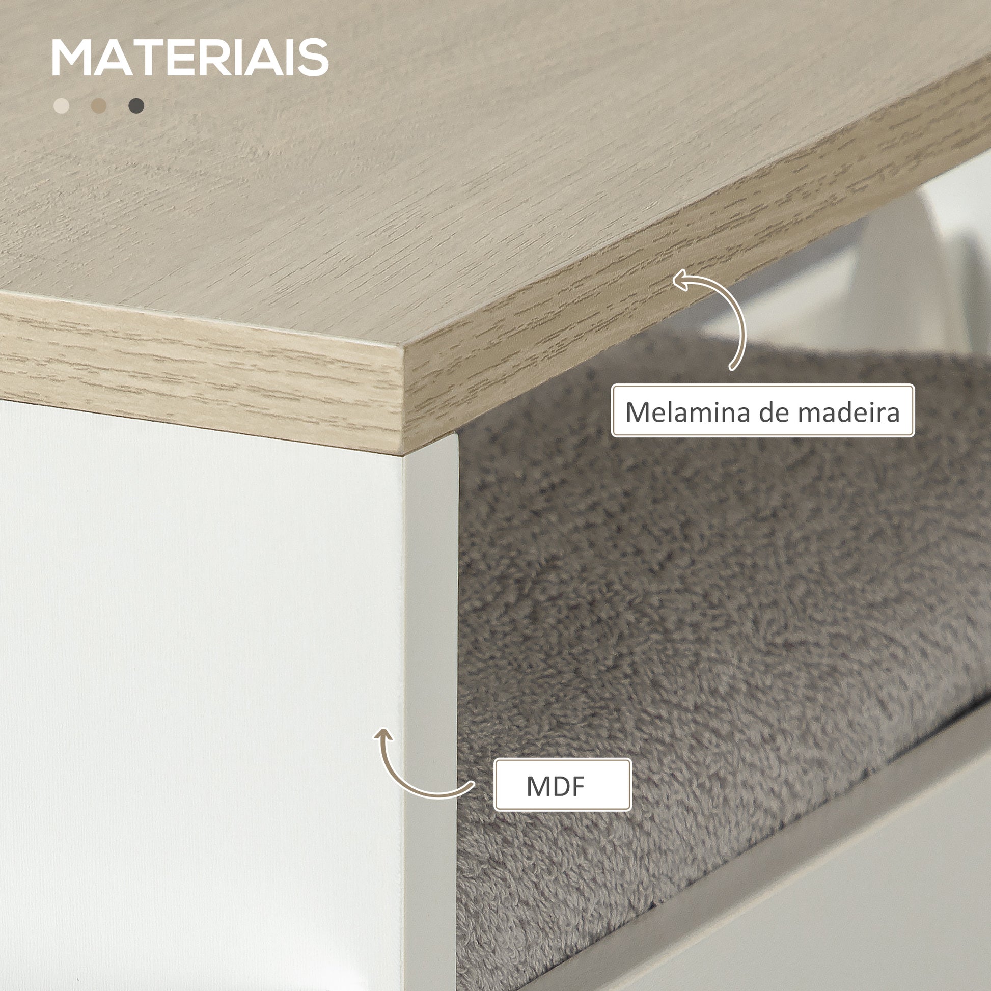 - Materiais: Placa de melamina MDF durável