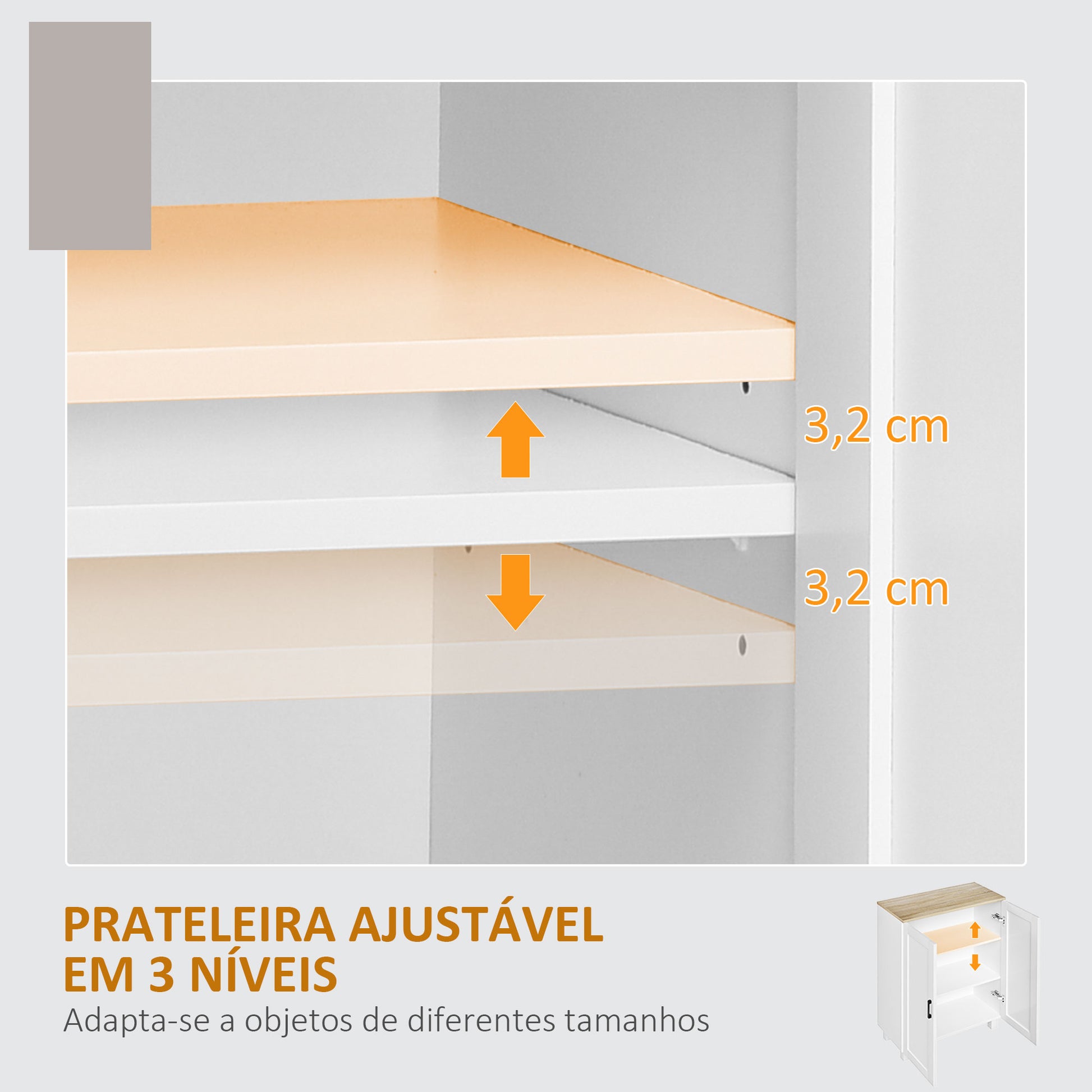 - Medidas: 60x30x90 cm, com prateleira superior ajustável em 3 posições.
