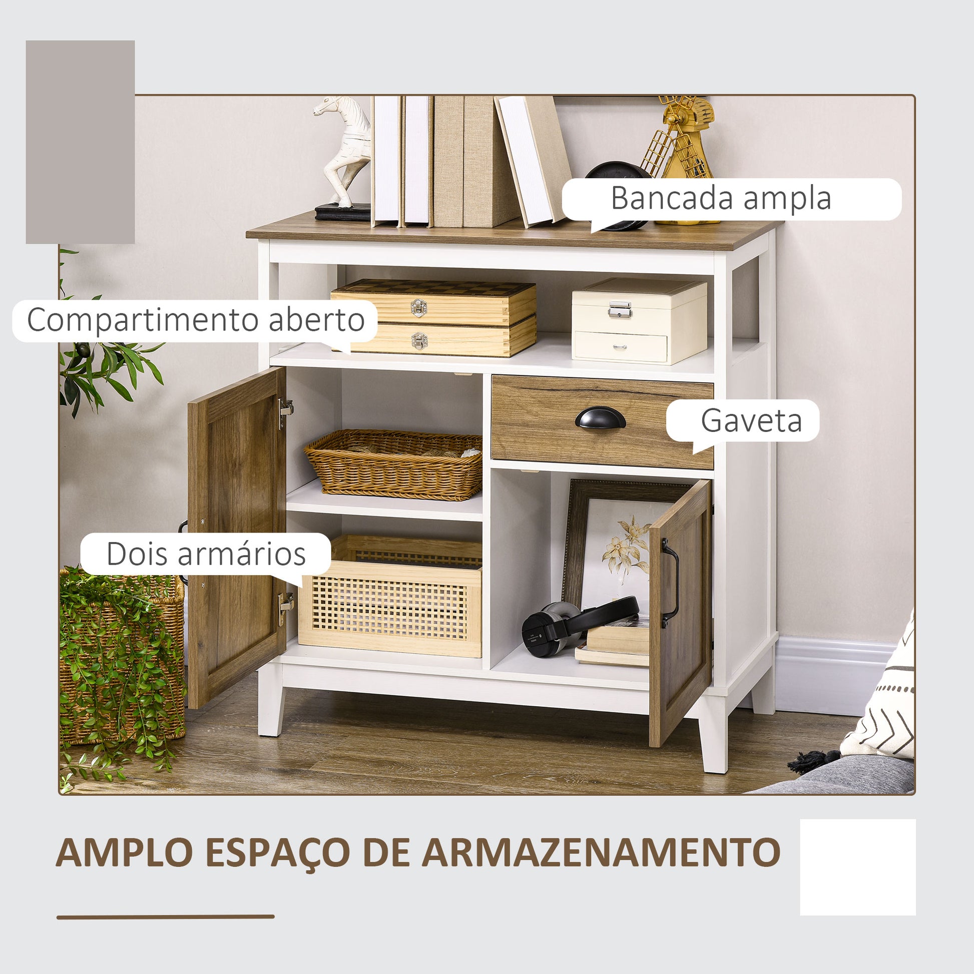 Aparador de Madeira Envelhecida e Branco – 76,6x35x81,5 cm – MDF e Melamina