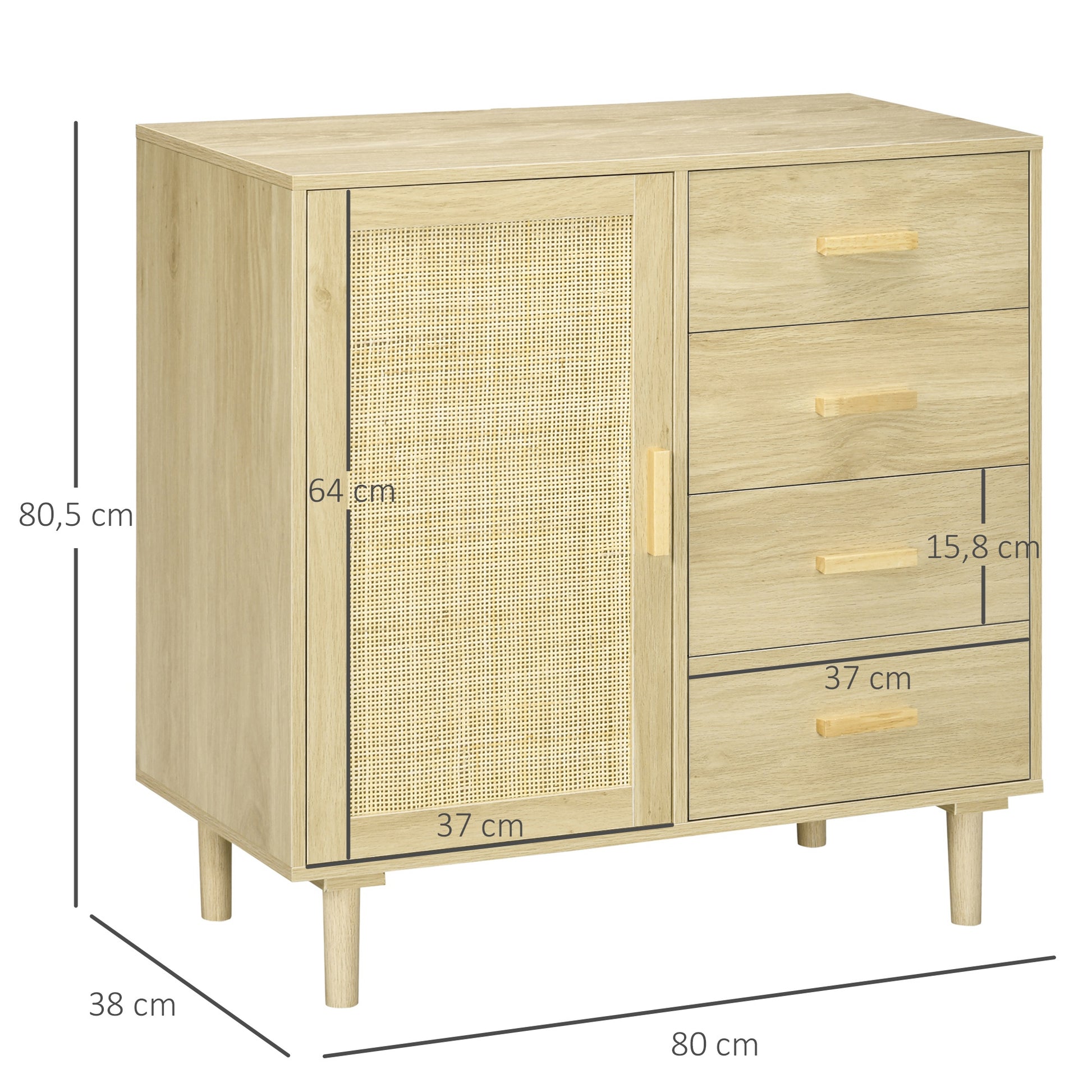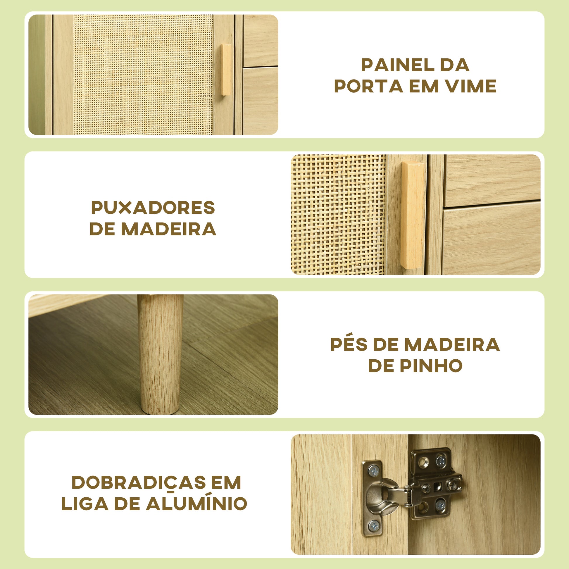 Aparador – 80x38x80.5 cm – Cor de Madeira Natural – Melamina de madeira, vime e madeira de pinho