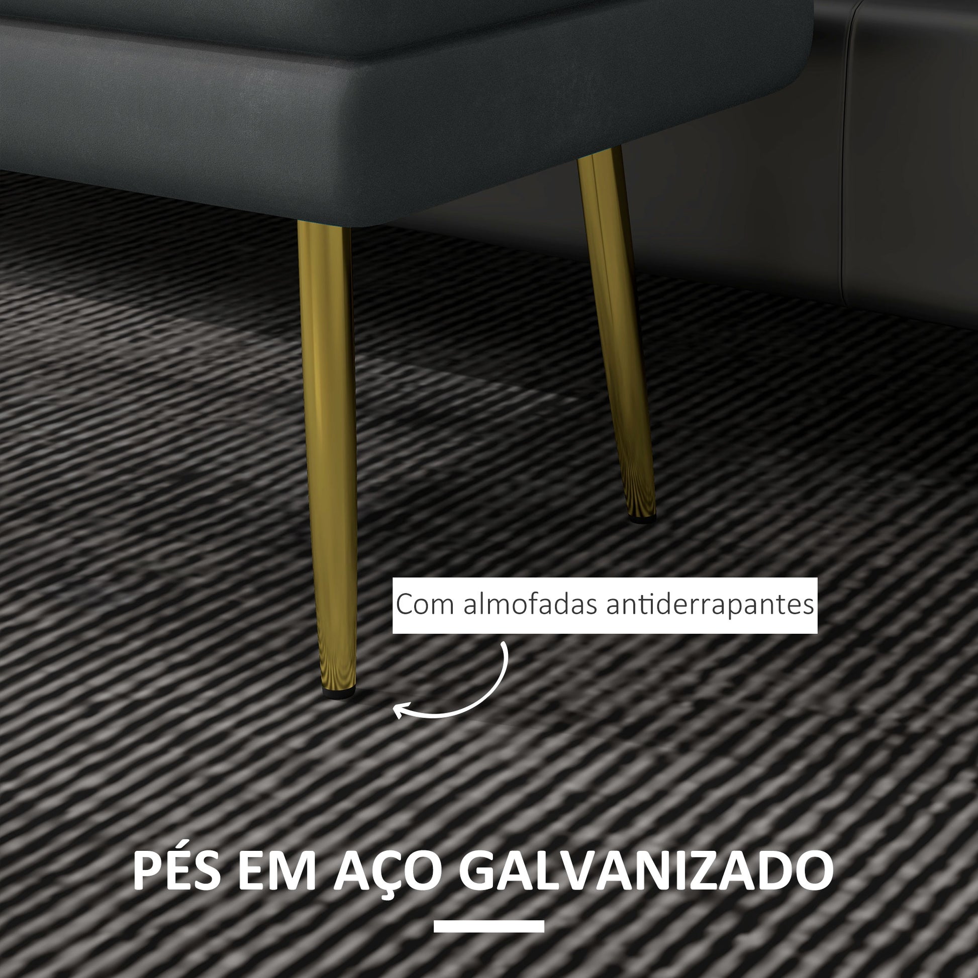 Banco Acolchoado em Veludo – 79,5x37,5x43 cm – Cinza Escuro – Tecido de poliéster
