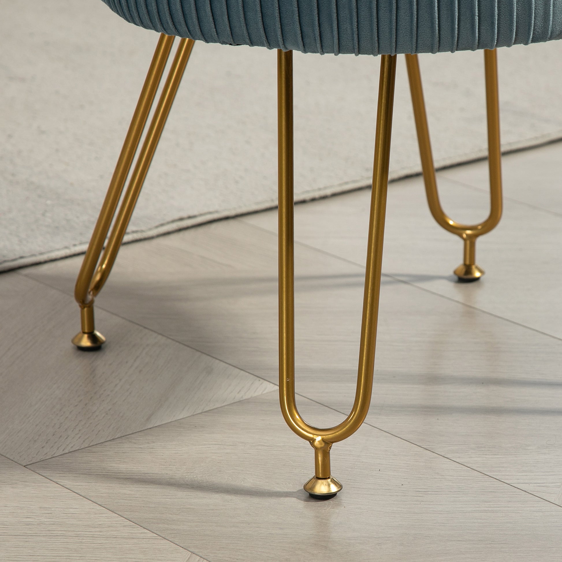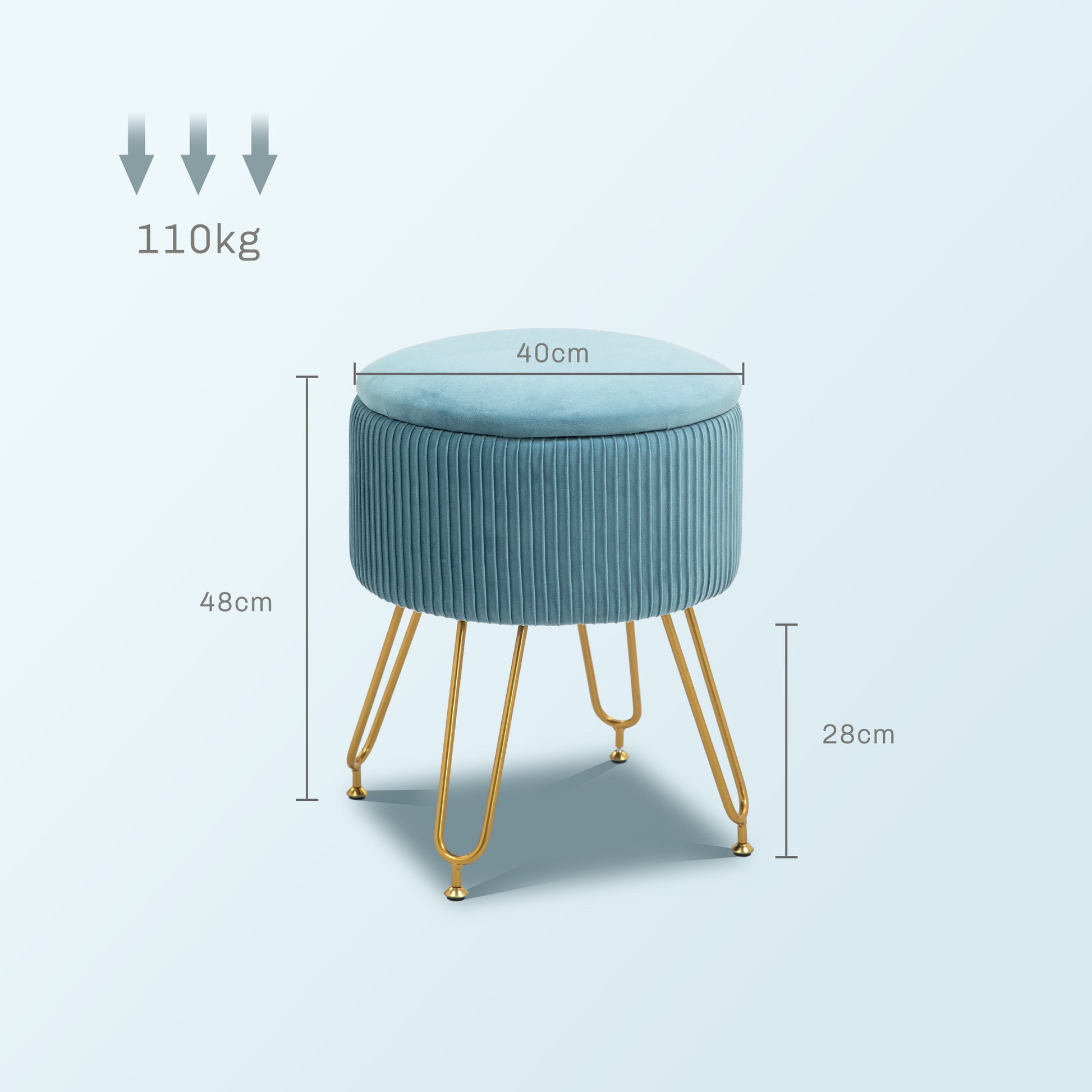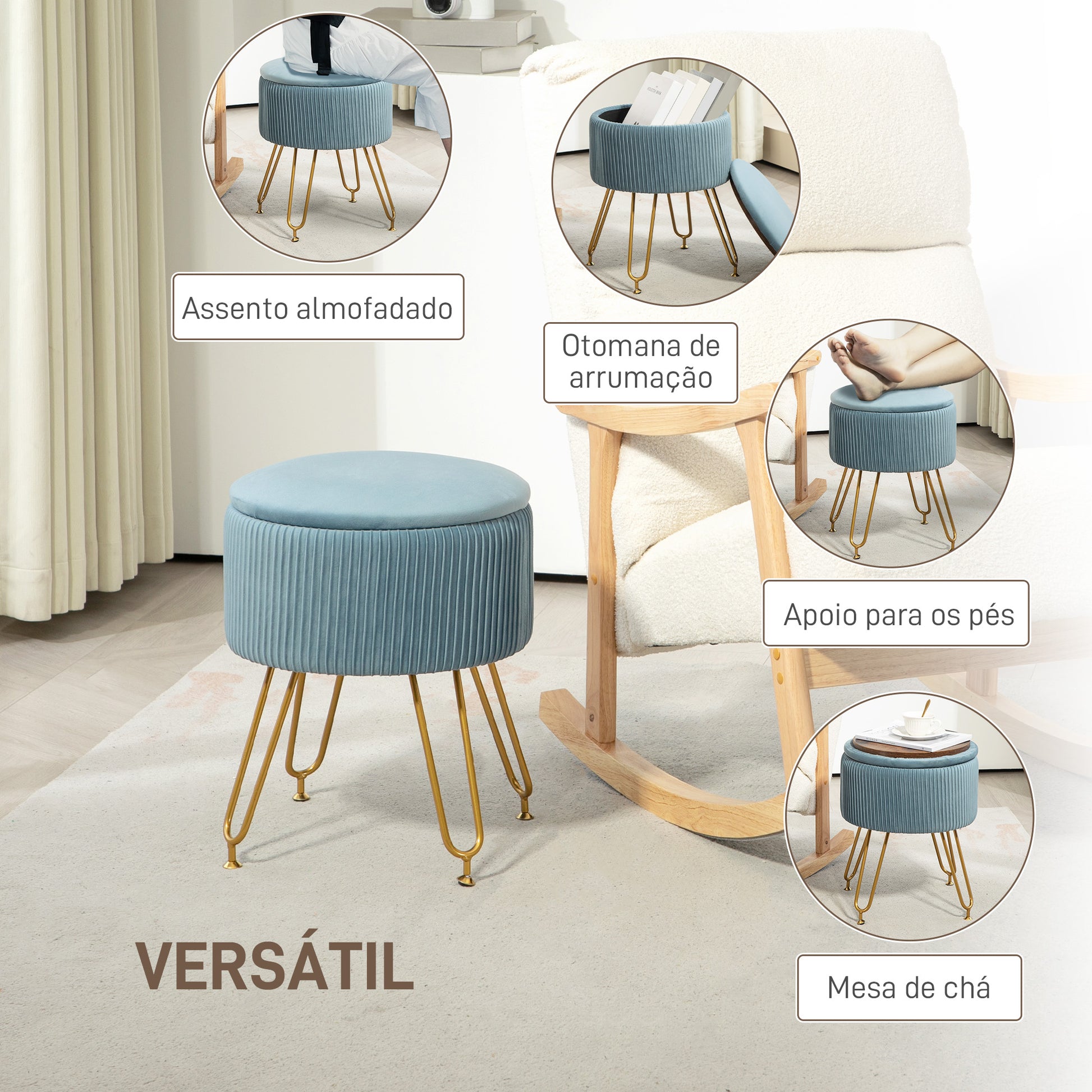 Puff de Armazenamento em Veludo Azul – Ø40x48 cm