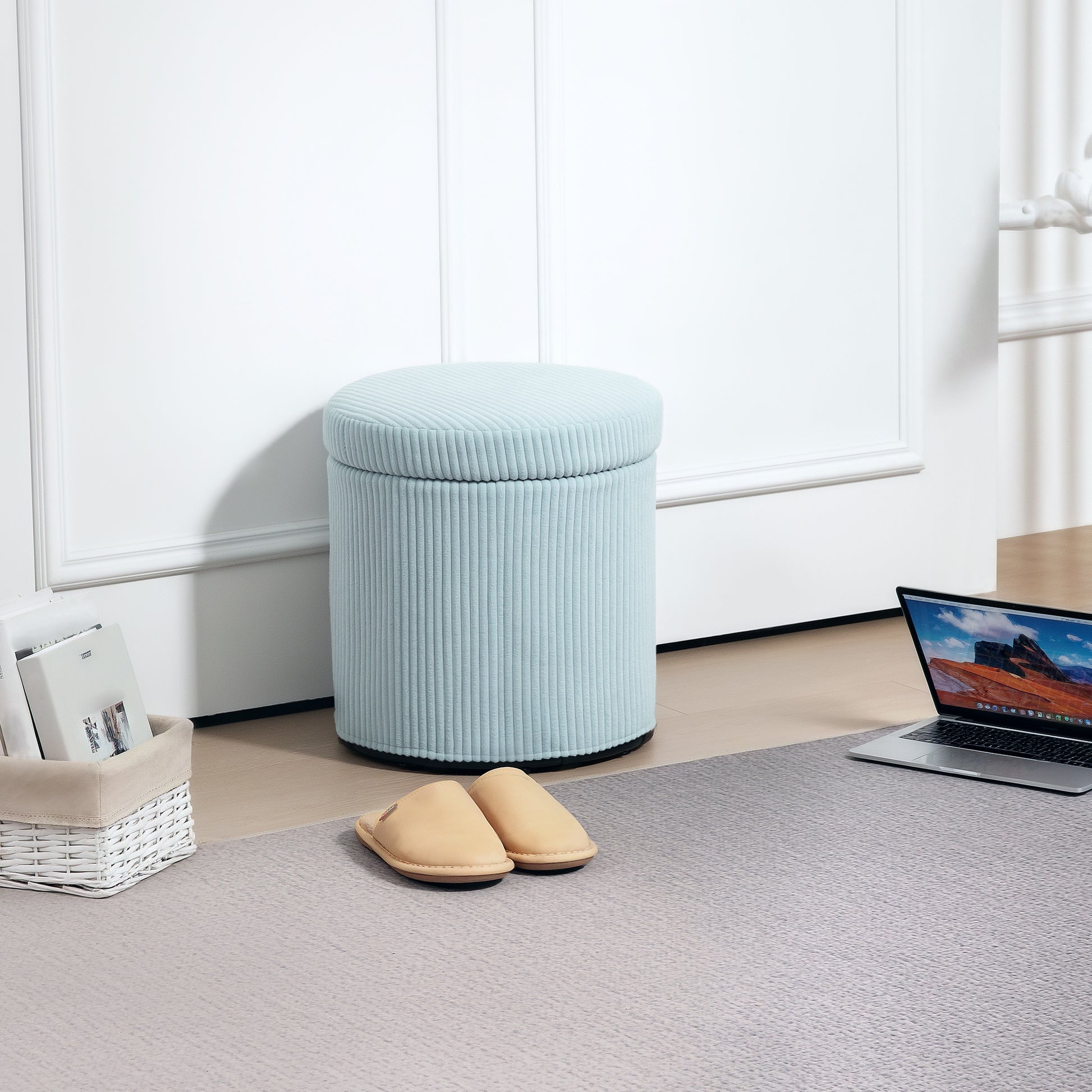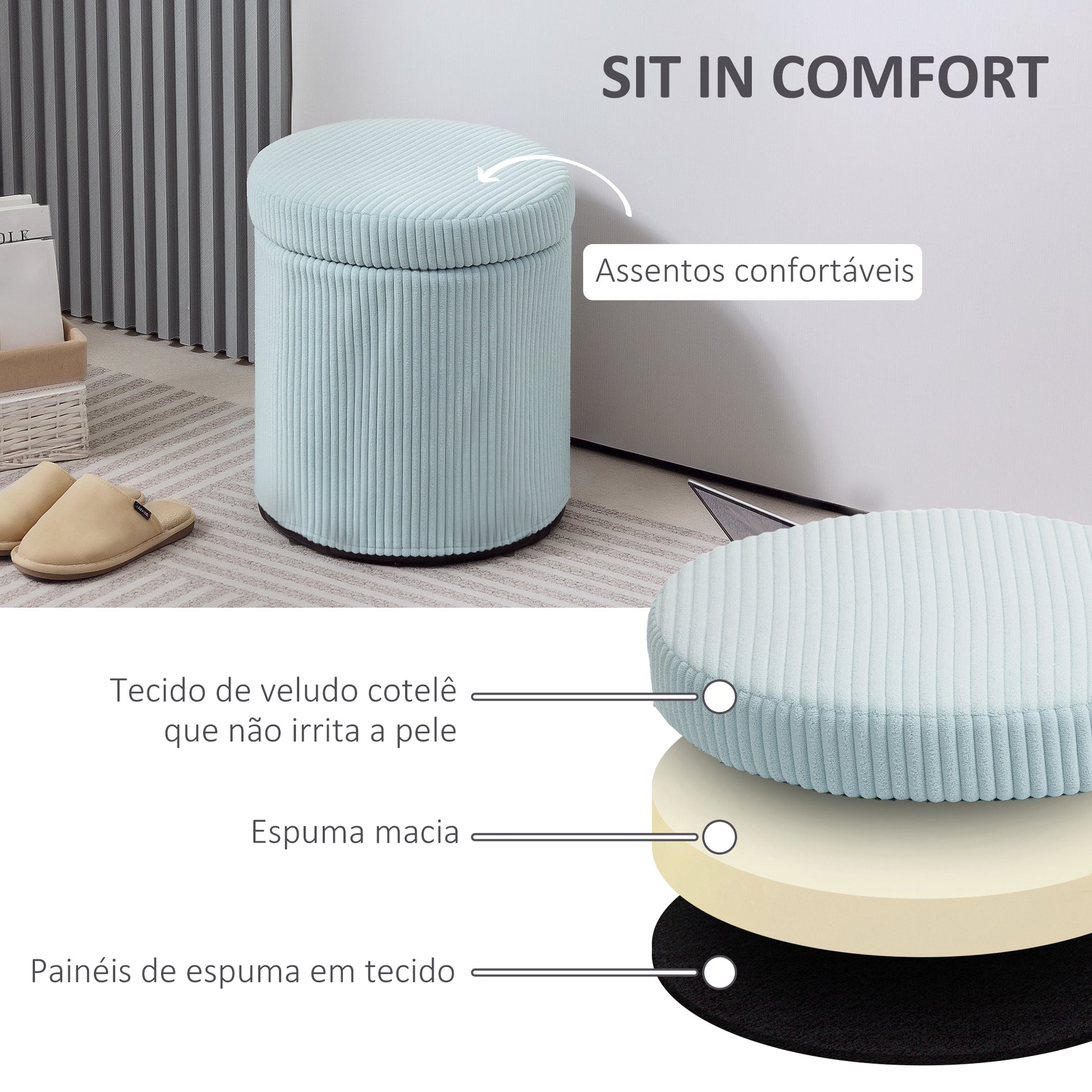 Puff de Arrumação Redondo Estofado em Veludo Cotelê Azul Claro Ø40x41 cm