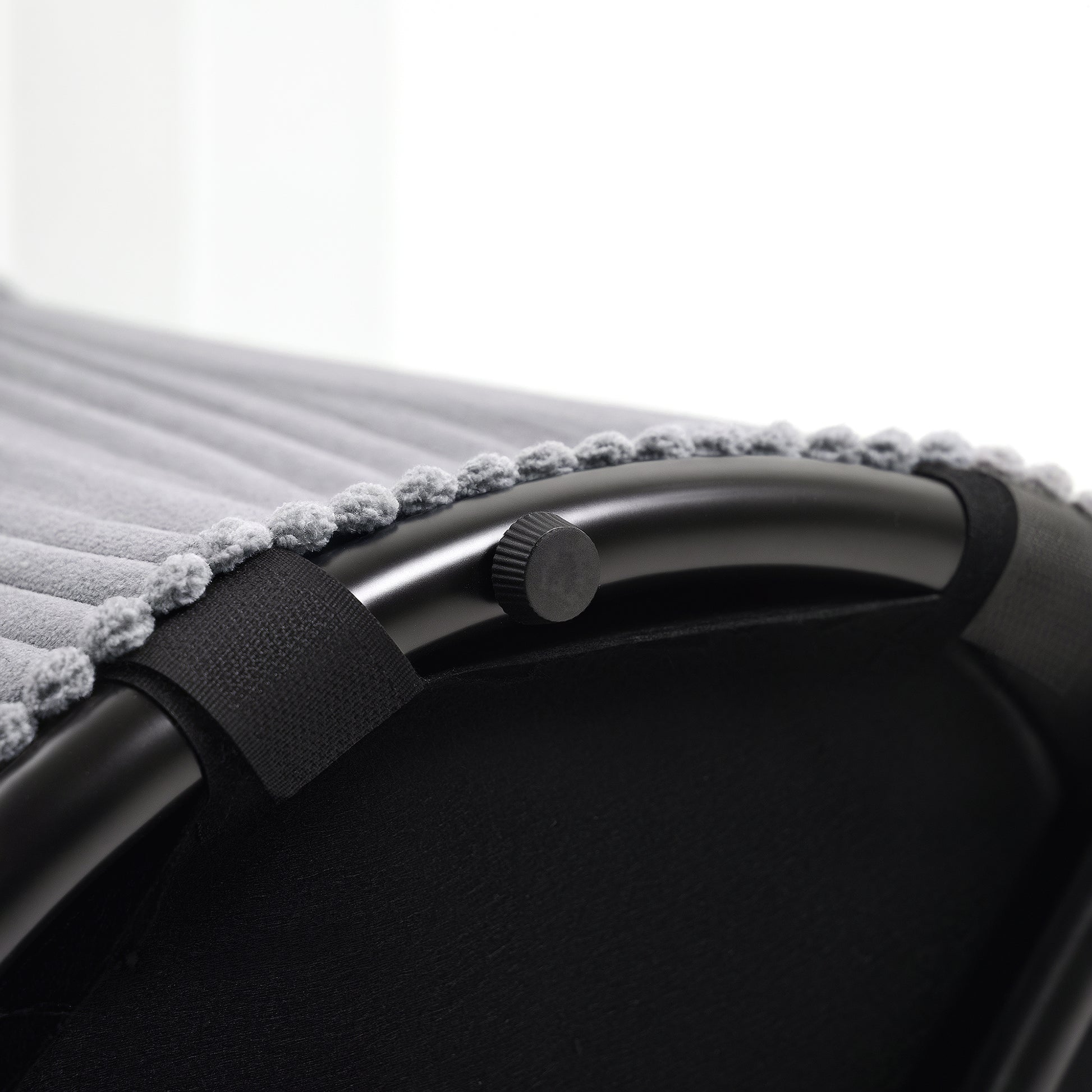 - Materiais: Feito de veludo cotelê (100% poliéster), espuma e aço, garantindo durabilidade e resistência.