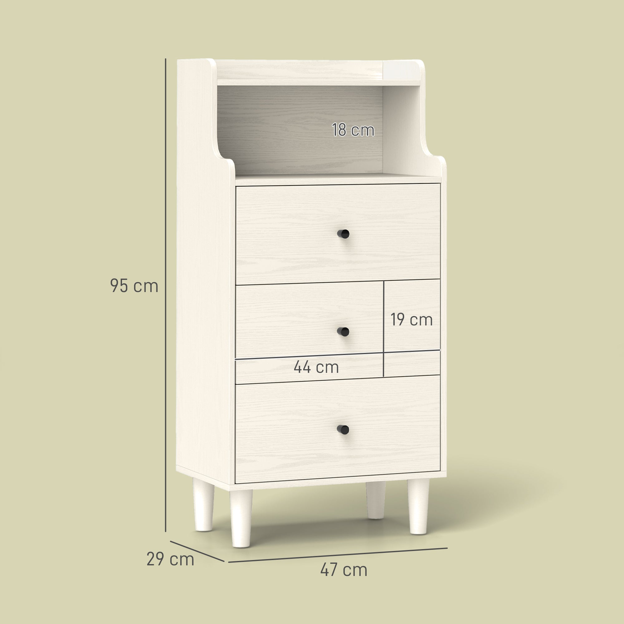 Cómoda Branco Acinzentado 47x29x95 cm - Móvel de Quarto com 3 Gavetas e Prateleiras Abertas
