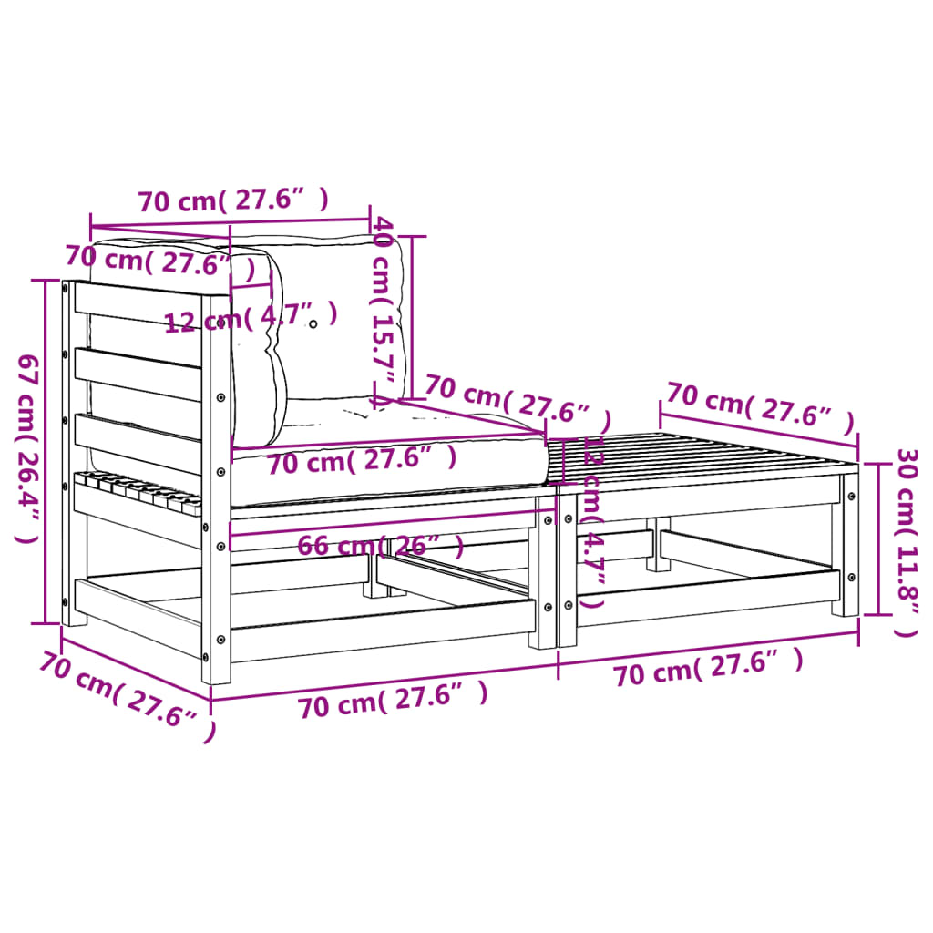 - Dimensões do sofá de canto: 70 x 70 x 67 cm (L x P x A)