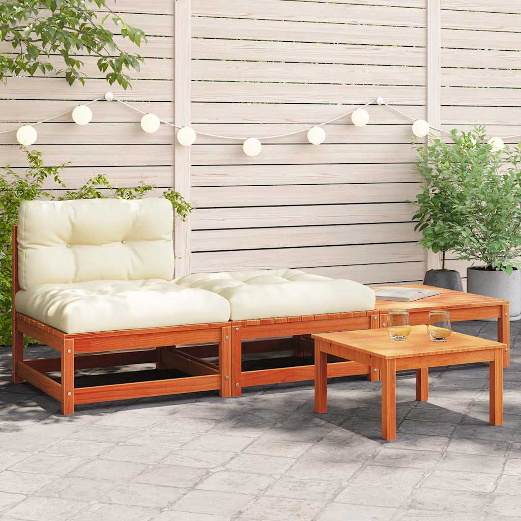 - Madeira de pinho maciça: a madeira de pinho maciça é um bonito material natural. A madeira de pinho possui um grão reto e os nós conferem ao material o seu aspeto rústico. Feita em madeira de pinho maciça, esta sofá sem apoio de braços é durável e estável.