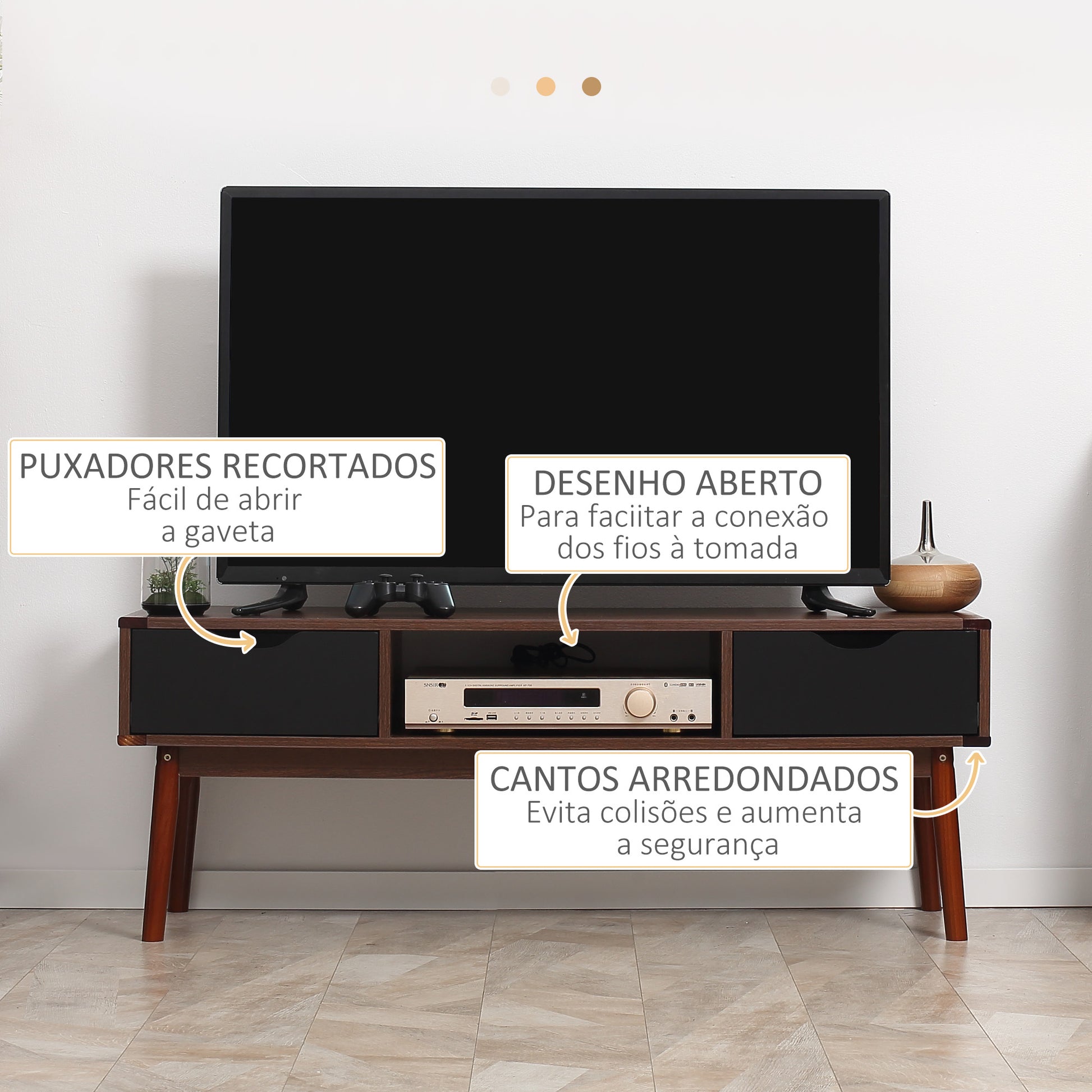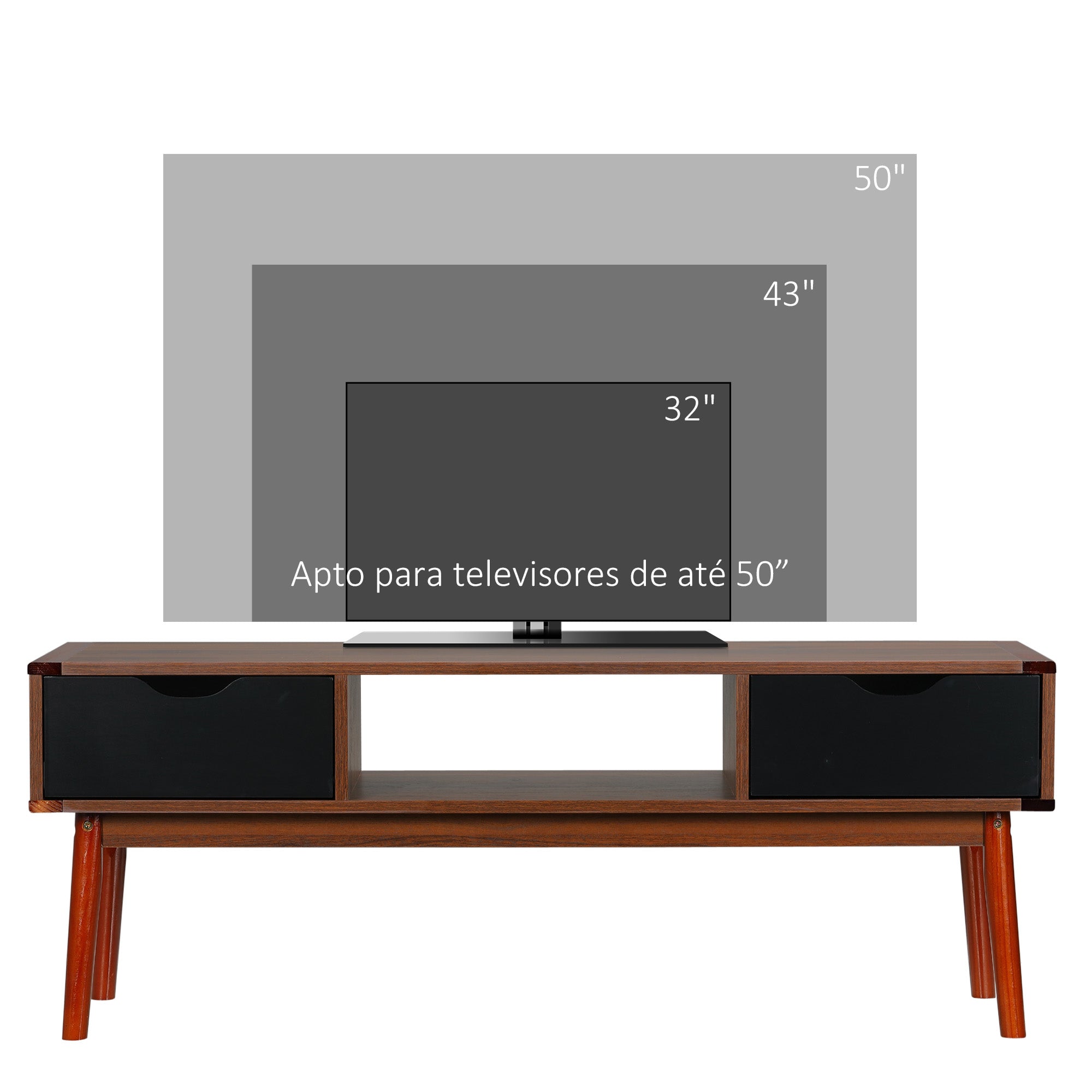 Suporte de TV Mesa para TV de 50" com 2 Gavetas e Compartimento Aberto - 122x39x46 cm - Teak