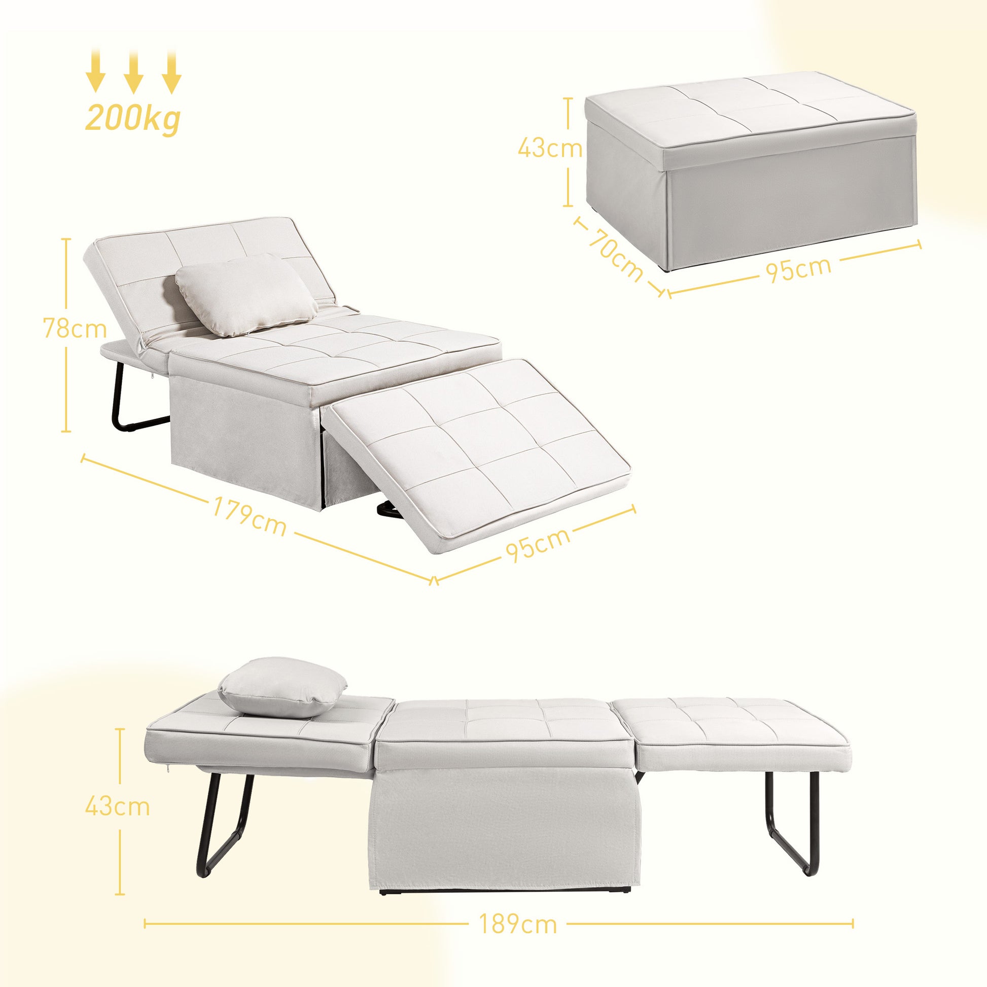 Sofá Cama Individual Estofado em Linho 95x189x43 cm – Branco Gelo