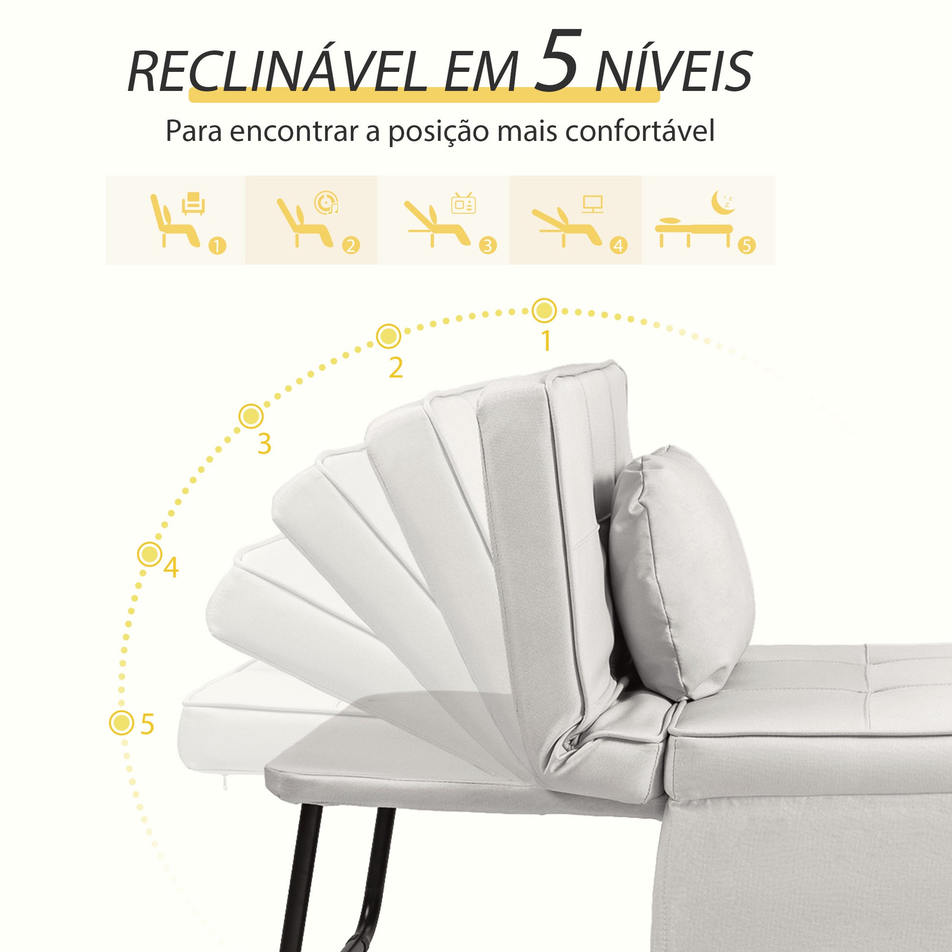 Este moderno sofá conta com um desenho 3 em 1, transformando-se rapidamente numa cama individual ou num apoio para os pés. O encosto reclinável em até 5 posições oferece máximo conforto para assistir TV, descansar ou tirar um cochilo.