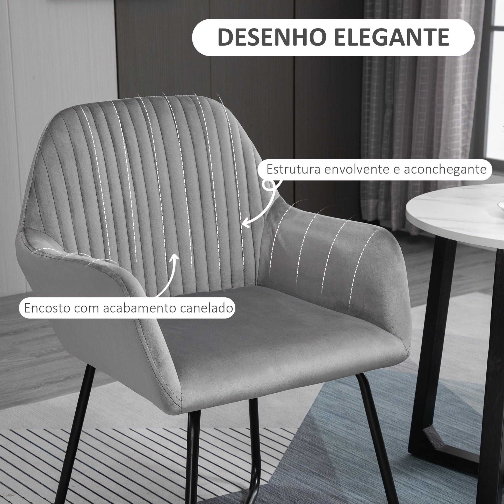 Esta elegante cadeira estofada em veludo cinzento é perfeita para a sua sala de jantar, cozinha, escritório ou área de convívio. Com um design moderno e sofisticado, vai adicionar estilo a qualquer espaço.